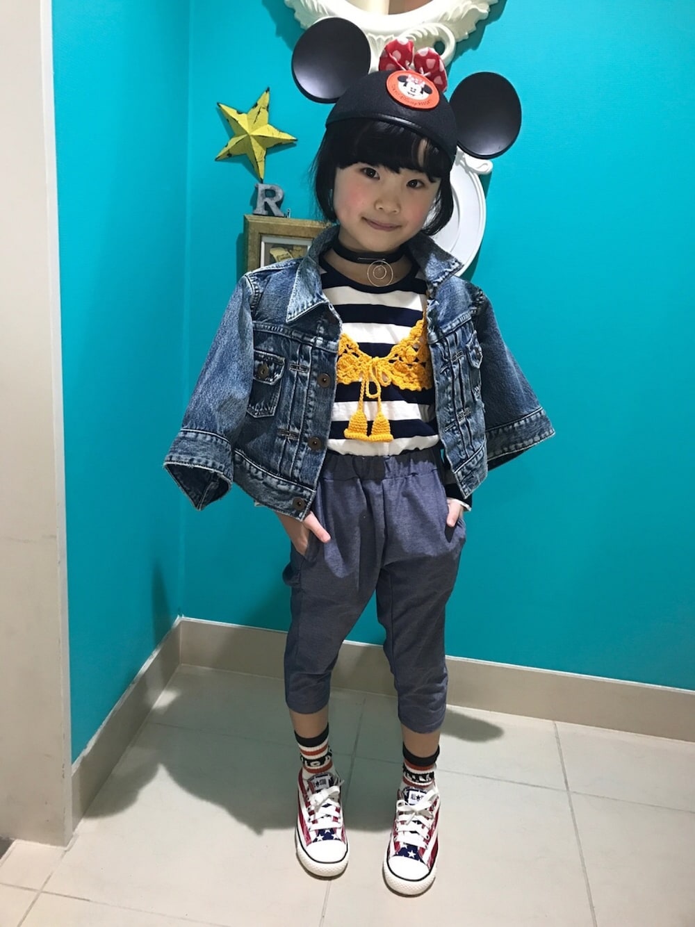 ディズニーランド🐭行きたいなぁコーデ🎉 ビスチェでシンプルコーデに差し色🍄🍄🍄🍄 いいね😊ありがとうございます