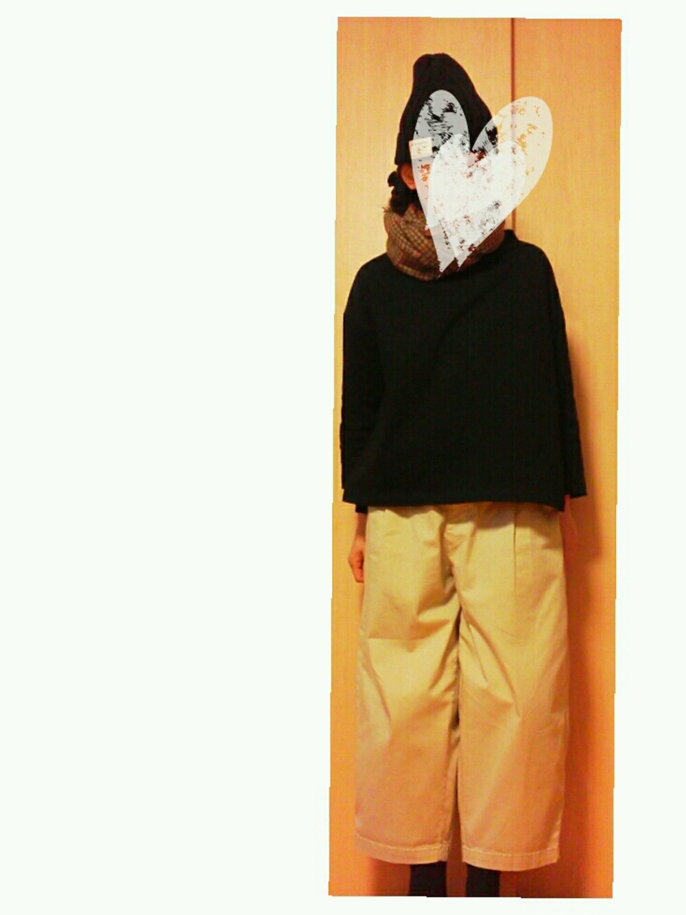 寒いとまず首に巻きます。 あ、パンツくしゃくしゃ。