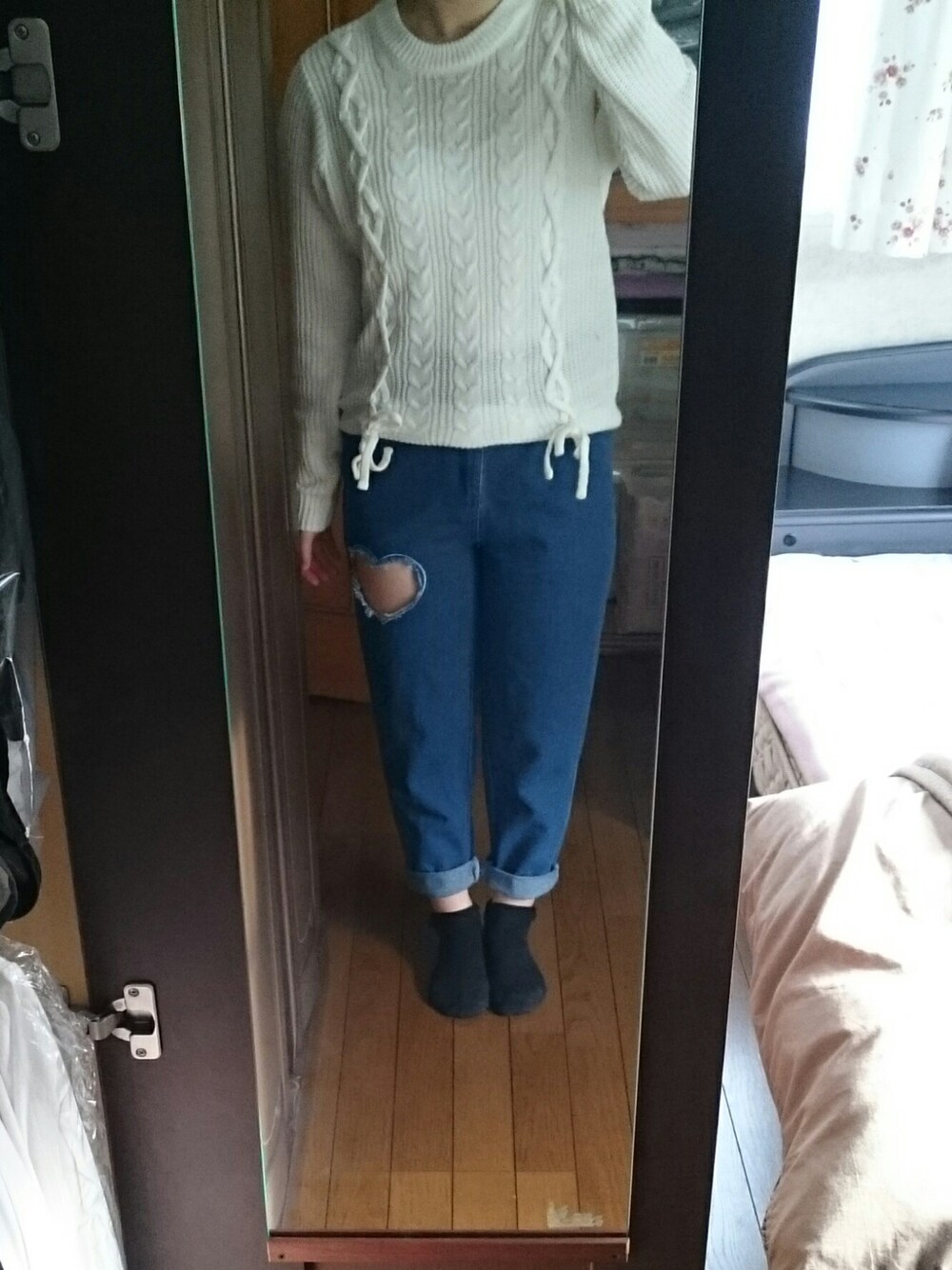 一週間着回しコーデ2日目⭐⭐ 着回し→白ニット(wego) +穴あきデニム(no bland) Twitter→@moachan_2