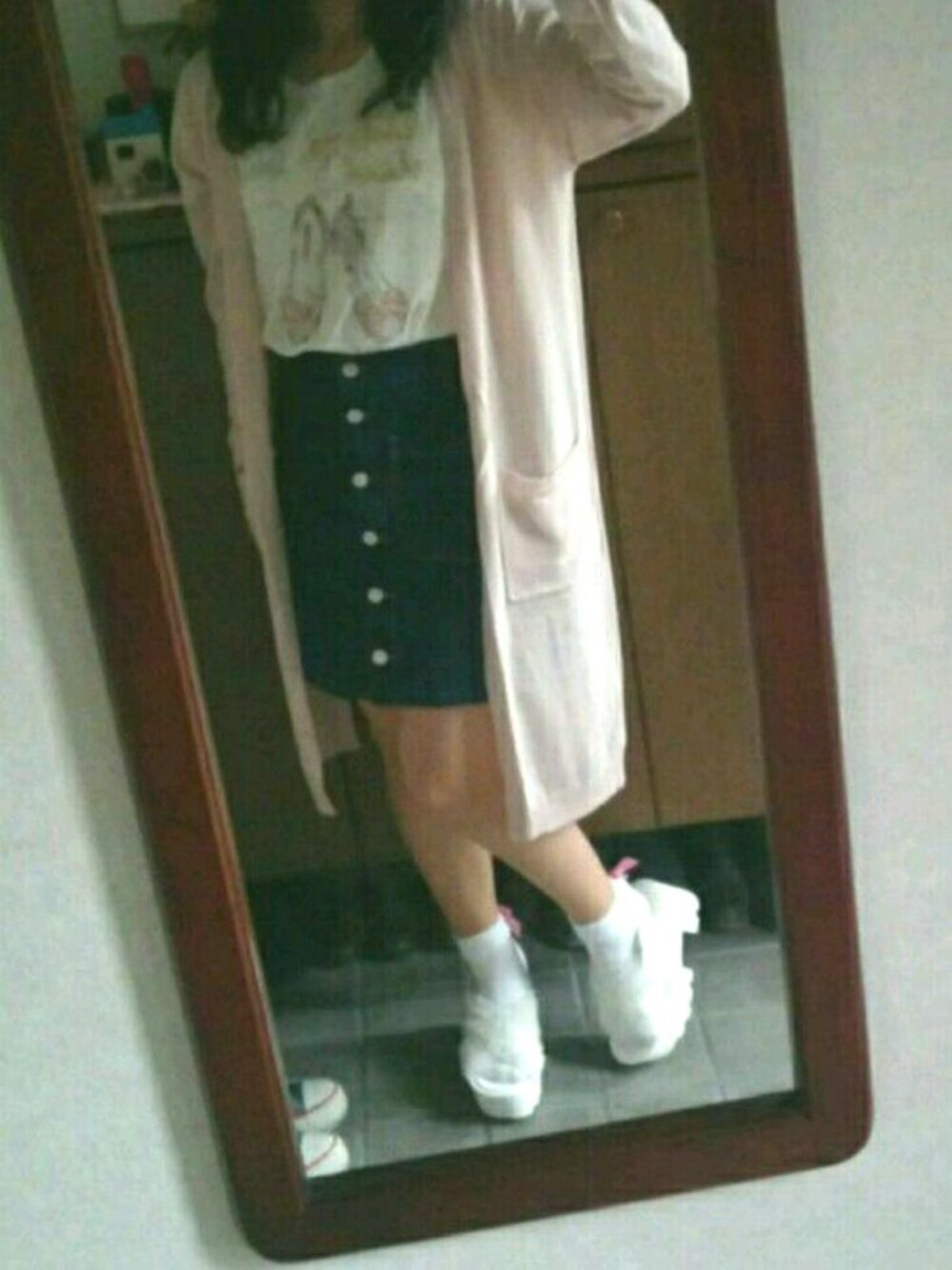 久々の投稿⭐ カーディガンとスカートはwego Tシャツ しまむら 靴 SPINNS です!
