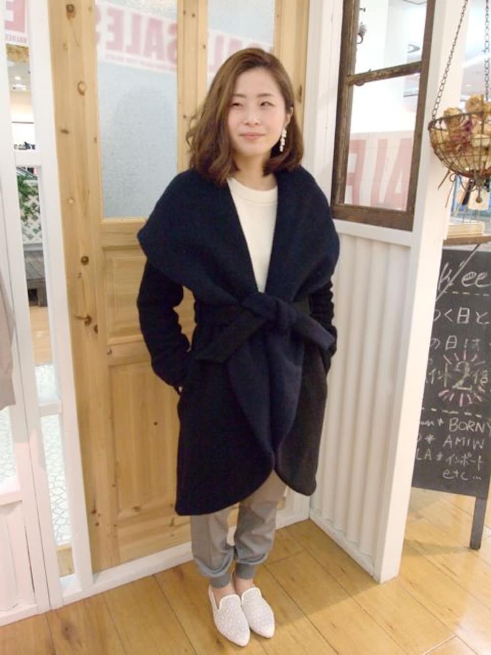 昨年も大好評だったBORNYのガウン!タームリバーコート☆ ベルトを前できゅっと縛り、Aラインにするスタイルがおすすめです。