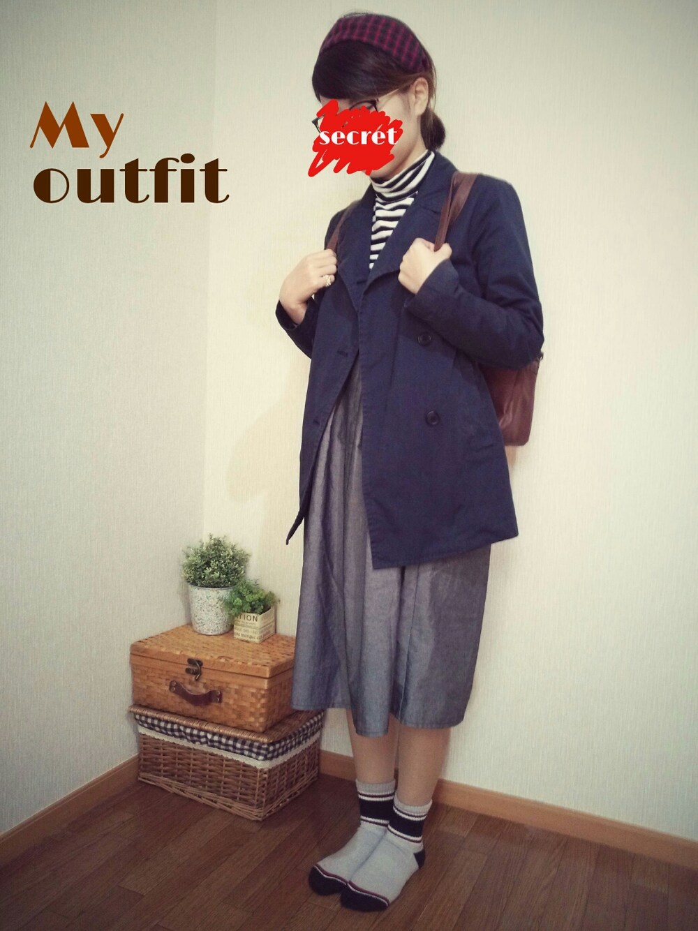 ジャケット…頂き物 ワンピース…頂き物 ボーダータートル…f21 靴下…UNIQLO 靴はネイビースニーカー履きました。