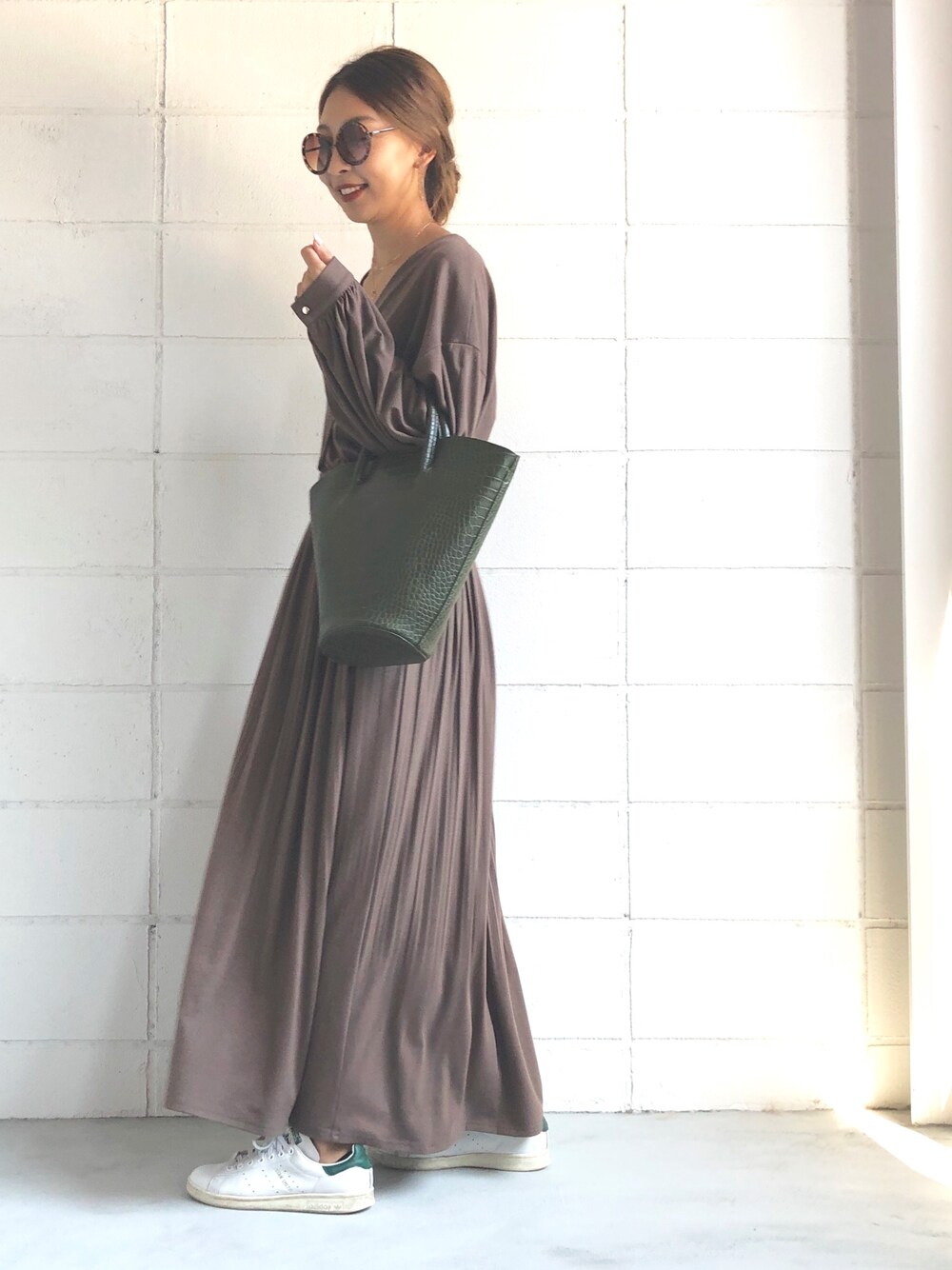 しっかりマキシ丈のワンピは、カットソー生地だからめちゃめちゃ着やすい💯