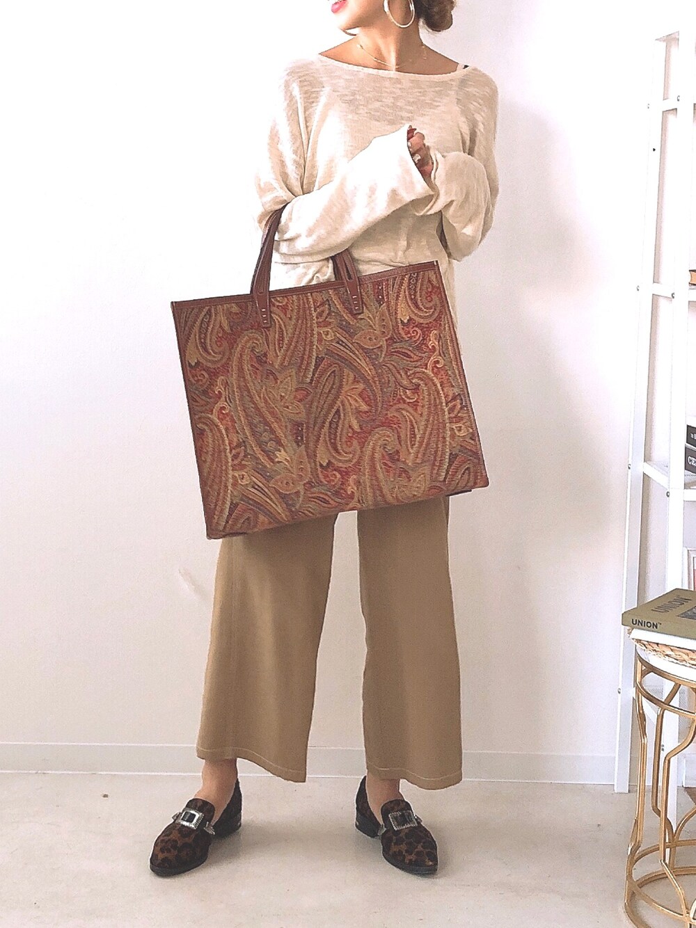 新作のゆるゆる透け透けニット🧶肌触り良くて、袖なくてルーズでかわいい💕バッグも靴も柄で好きなかんじ🐆🐆🐆