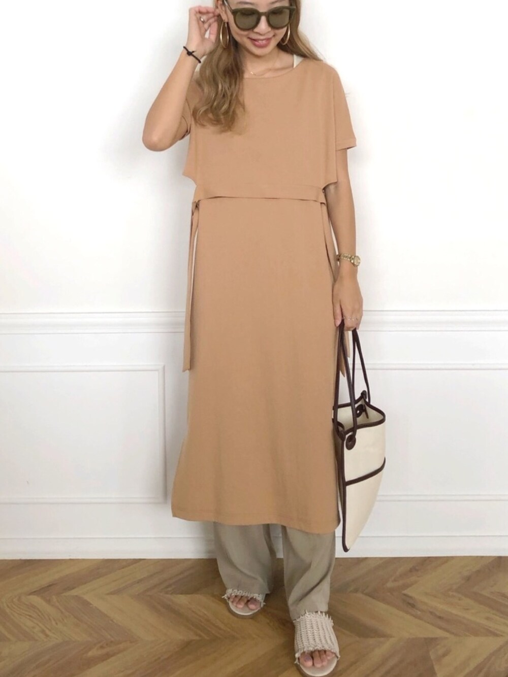 nutsのワンピース「【WEB限定】サイドリボンレイヤードコットンワンピース」を使ったコーディネート