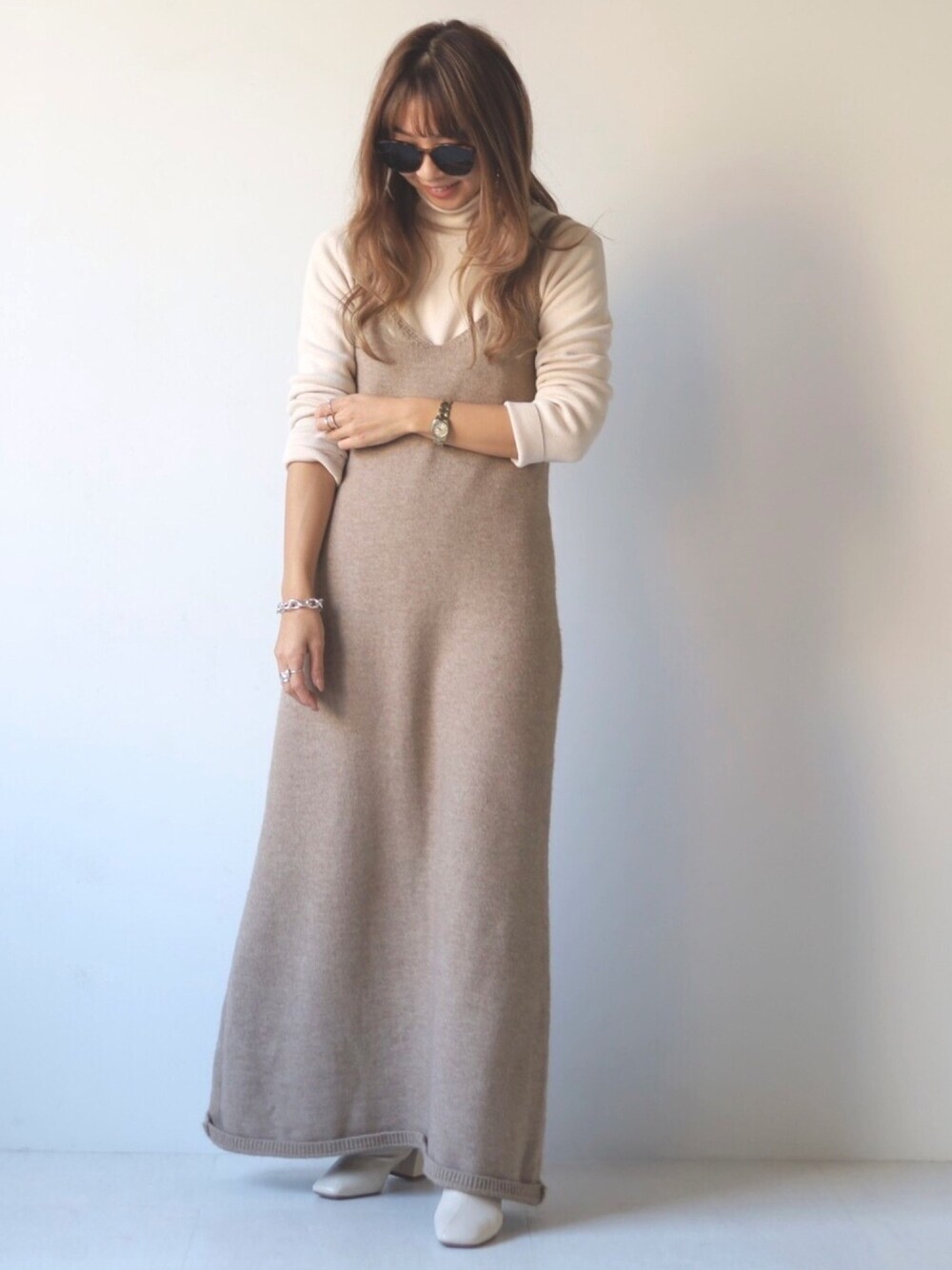 nutsのワンピース「【WEB限定】ニットキャミワンピース×カーディガン2ピースセットアップ」を使ったコーディネート