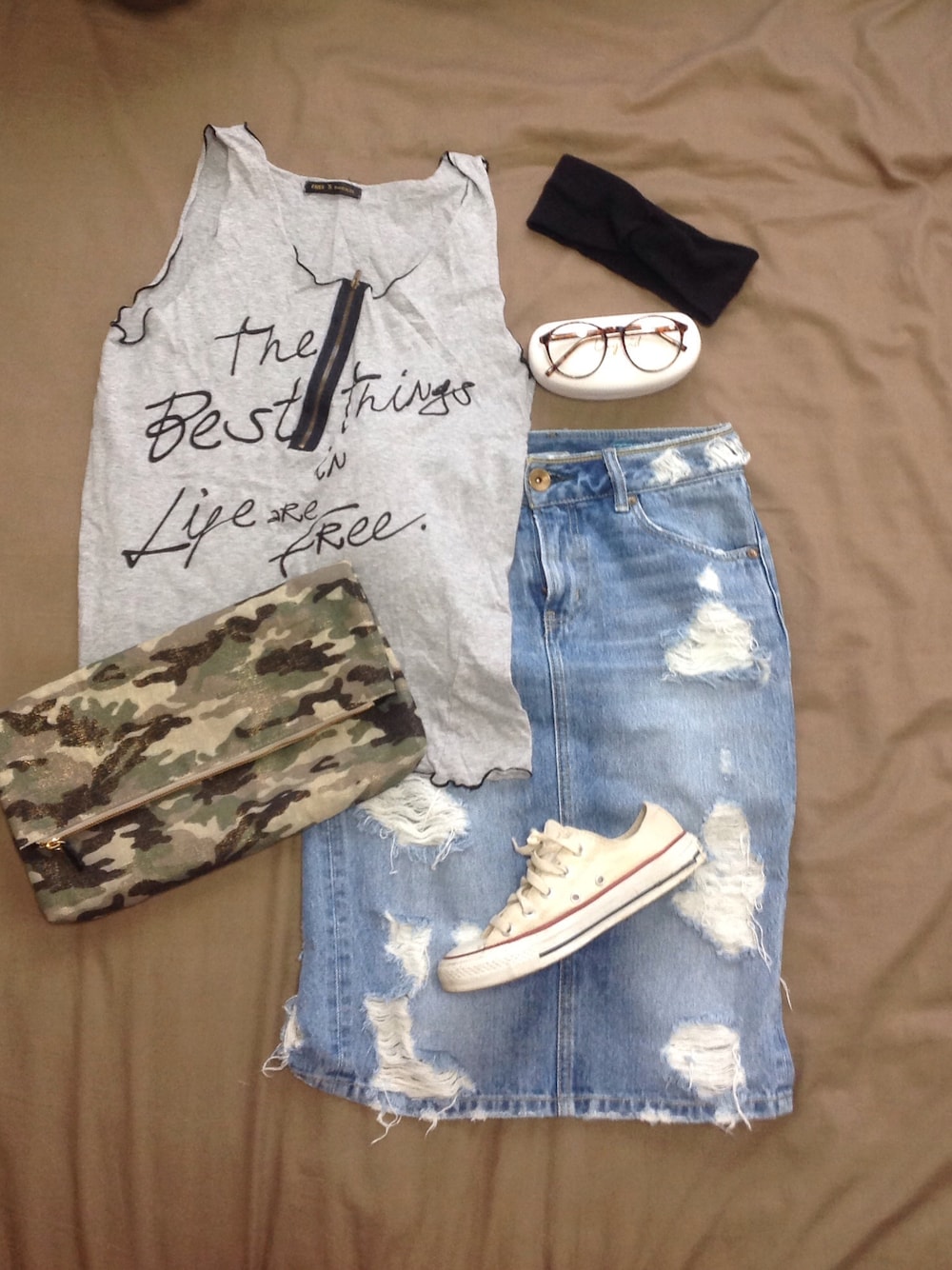 kona のデニムスカート「クラッシュ ミドル タイトスカート」を使ったコーディネート