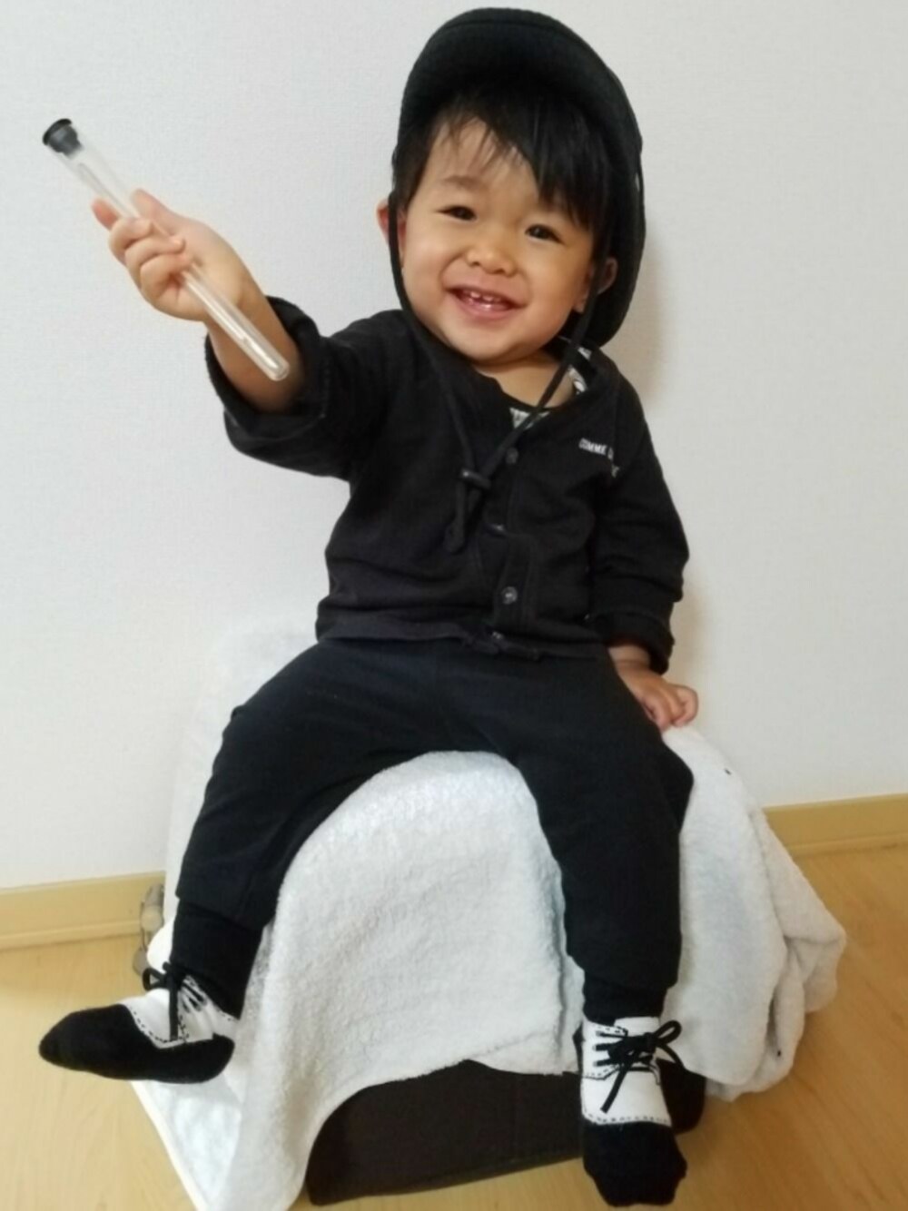 息子は、今朝は熱下がってたので、一安心(*^^*) でも鼻水と咳は継続中…(・・;) なので、朝から病院ググッて、決まらない… 悩んで悩んで🐰がいる病院にしました♡ 風邪で行ったけど、平均より小さすぎるって( •́ω•̀ ) ミルクも残すし、ご飯も偏食激しいから、中々増えない(-_-;) トマトとイチゴは出すだけ食べるけど、それを増やすべきなんかなぁ… 今日は、昨日UNIQLOで買ったレギンスはかせたかったので、真っ黒(*´∀`*) 耳かき渡したら、帽子かぶってくれたヾ(*´∀`*)ノ