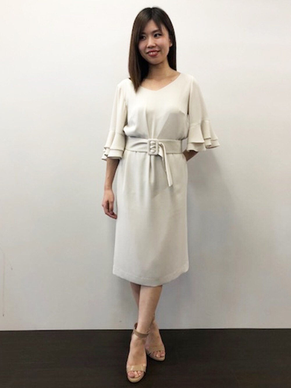 顔まわりがスッキリ見えする襟ぐりと袖の二段フリルが女性らしさ溢れるワンピース。 さらりと着るだけでオフィスにはもちろん、パーティーシーンにも使える大人上品アイテム。