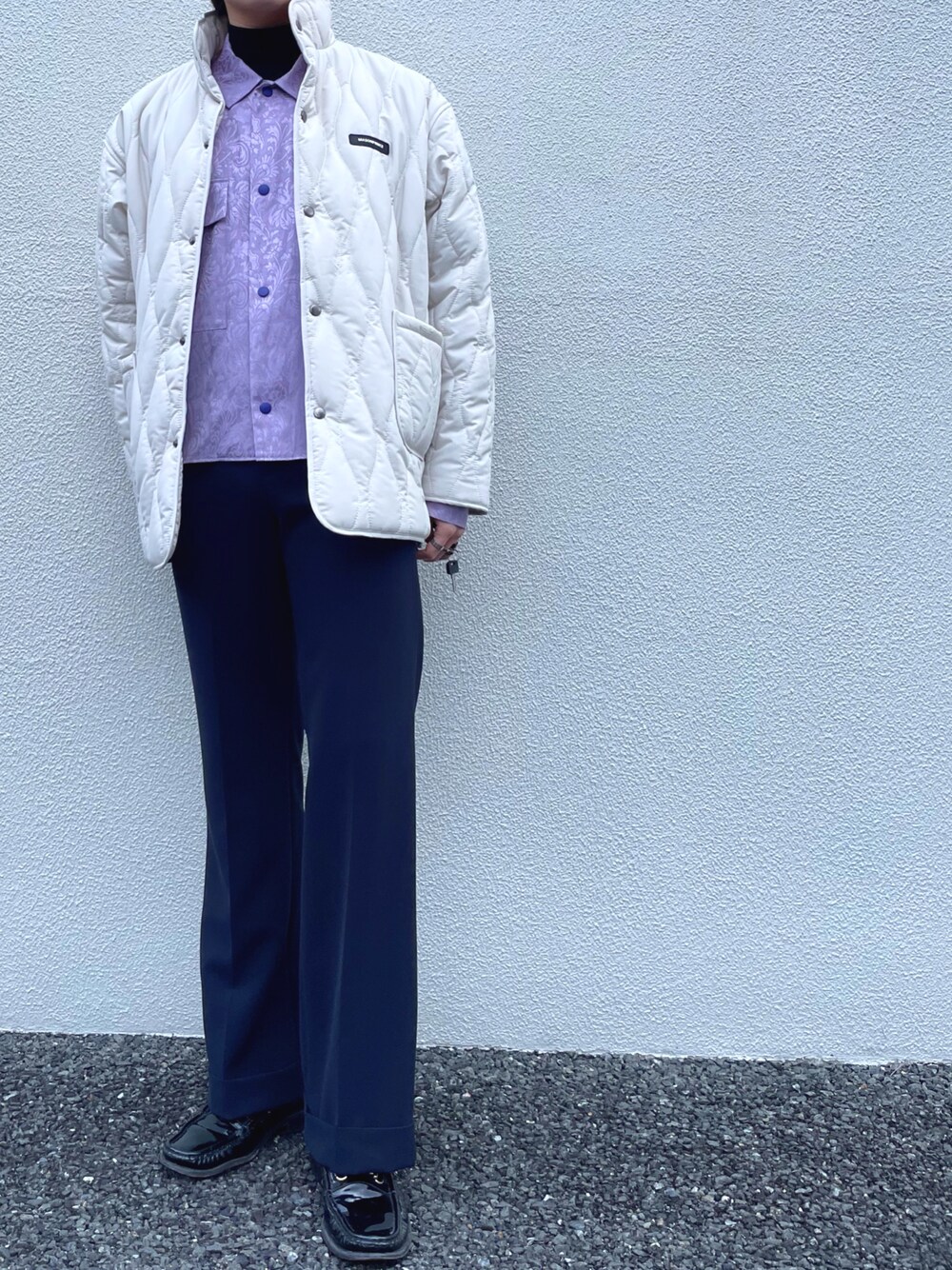 当麻のダウンジャケット/コート「【MASONPRINCE】4 color oversized quilted jacket MF4026」を使ったコーディネート