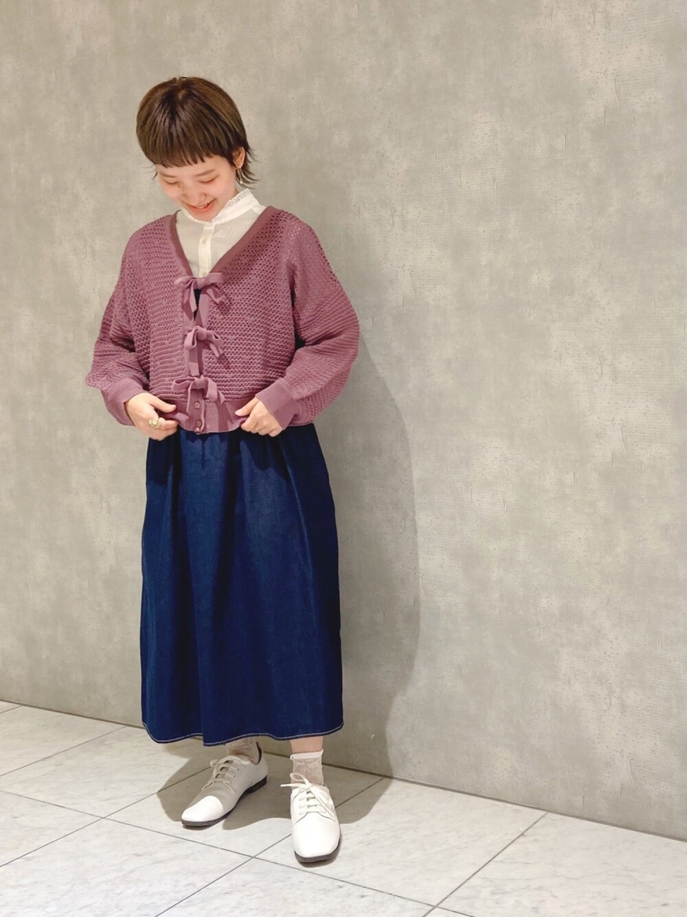 ぴ の こ 𓃟のカーディガン/ボレロ「2WAY透かし編みカーディガン」を使ったコーディネート