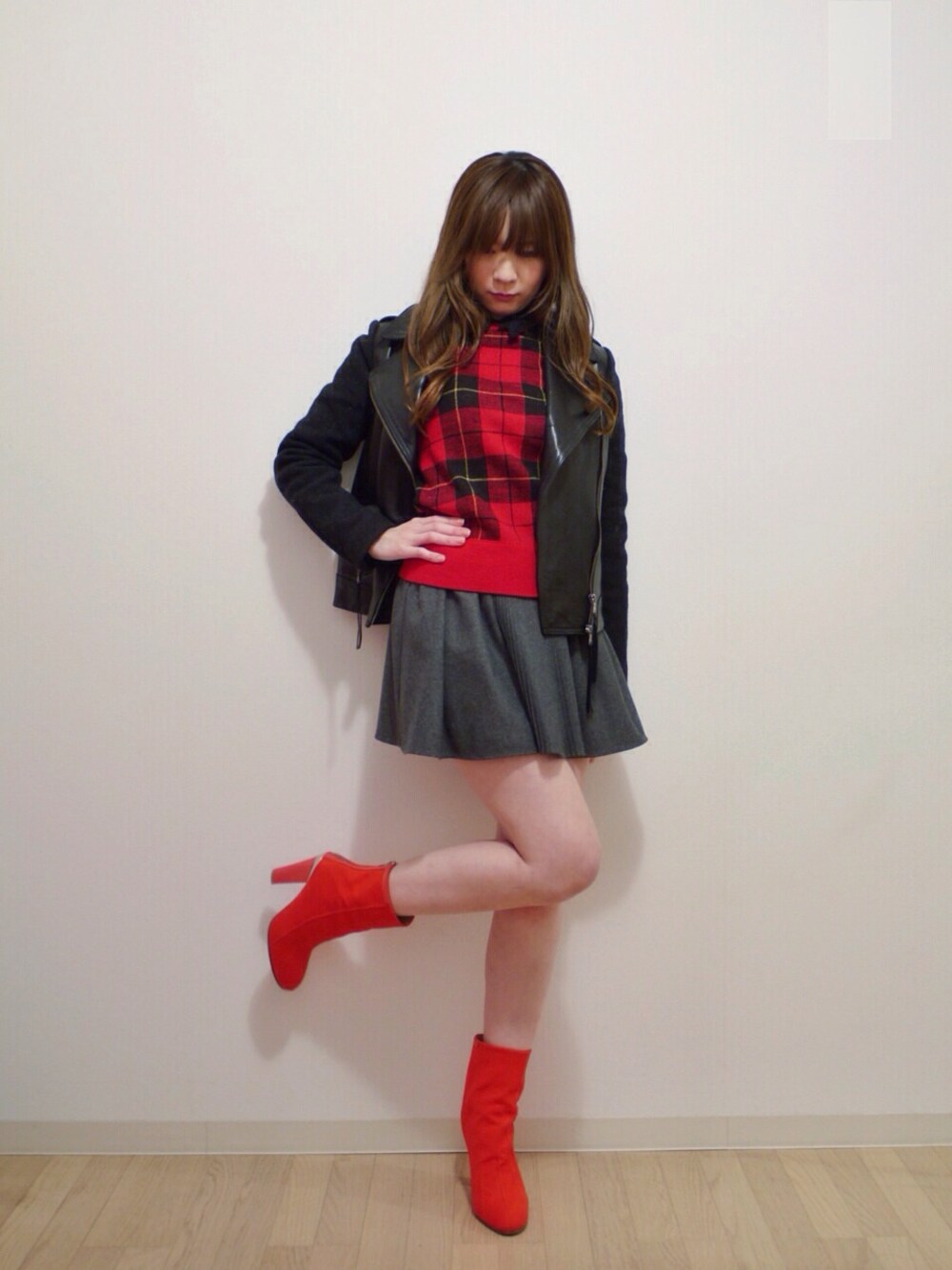 plumpynutsのライダースはビッグシルエットなので中にいっぱい着れます。 ニット+パーカー+ライダースとかでも余裕。 UNDERCOVERのブーツはヒール10cm。 すぐ疲れちゃいます。 きれいに歩けるようになりたい。。