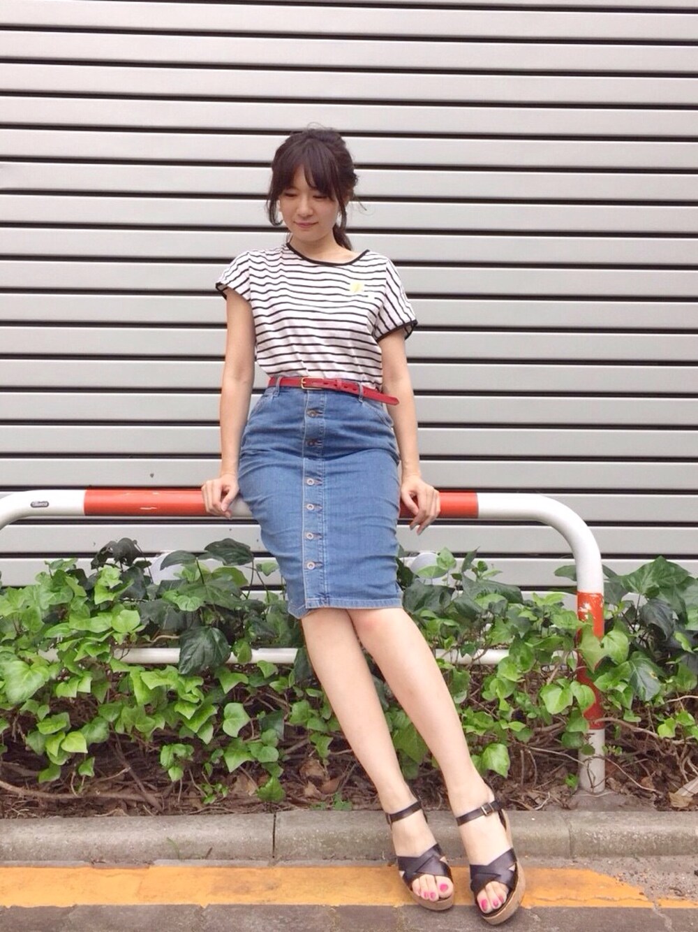petite robe noireのボーダーTは 胸元の金箔プリントがいいのです。 楽ちんコーデ