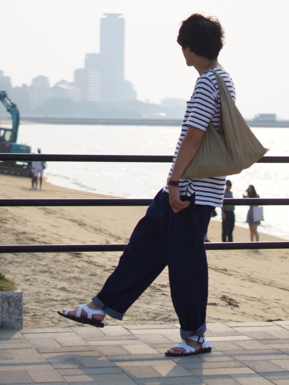 はんくんのTシャツ/カットソー「Champion×FREAK'S STORE/チャンピオン 別注ウォッシュドコットンボーダーバスクシャツ」を使ったコーディネート