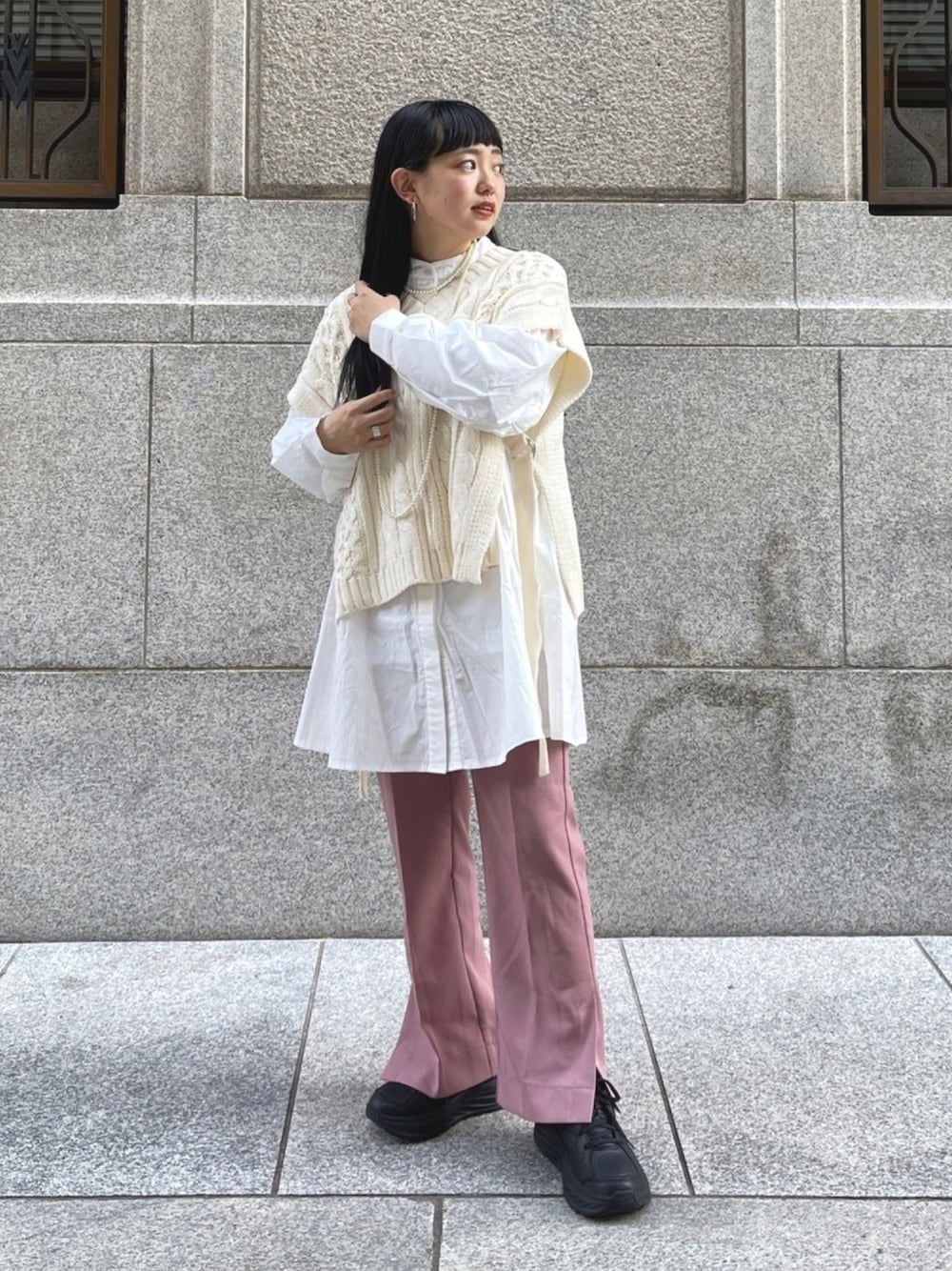 はるいろ!!! ・ ・ ざっくりしたニットベストが いちばん着まわせる気がする( ◠‿◠ )♡