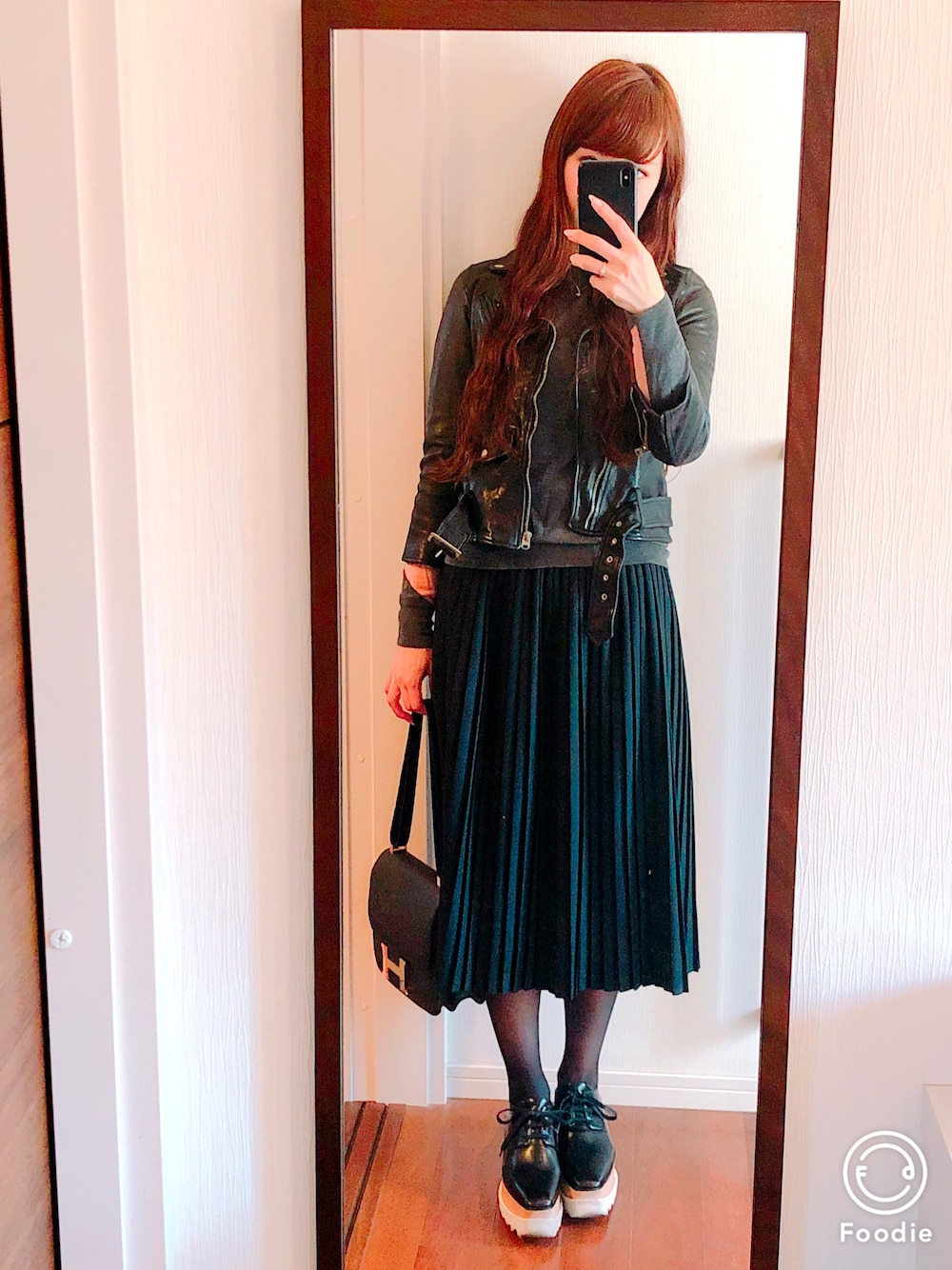 pippiのライダースジャケット「beautiful people シュリンクレザーライダースジャケット」を使ったコーディネート