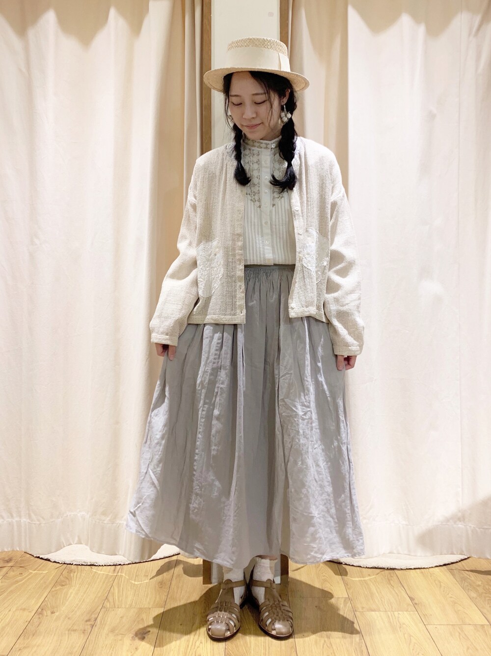 ご覧頂きありがとうございます* TSUHARUの淡色ガーリーコーデ 🌼 花刺繍がかわいいカーディガンは メッシュ素材なので 夏まで使える優れもの ◎ 3枚目〜 カーディガン無しver. ブラウスのビーズがとっても綺麗です ..𓇬 細見えするピンタックもポイント 𓌉 ▷▷ 本日より春物は再値下げです 𓈒𓏸𓐍 ---------- 阪急三番街店 スタッフWEAR ʾʾ きのした【@prn27】 ma【@3orange3】 mari🧸【@osakana1129】