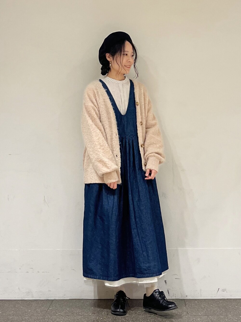 marin.🐏のワンピース「前後着ジャンパースカート」を使ったコーディネート