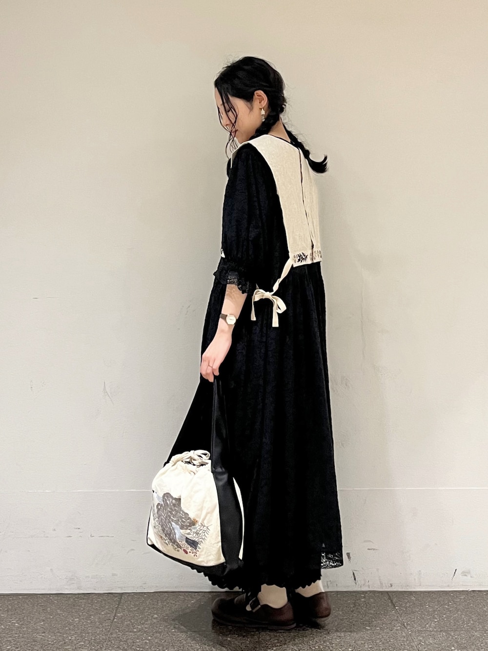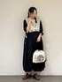marin.🐏のベスト「脇リボンフラワー刺繍ベスト」を使ったコーディネート