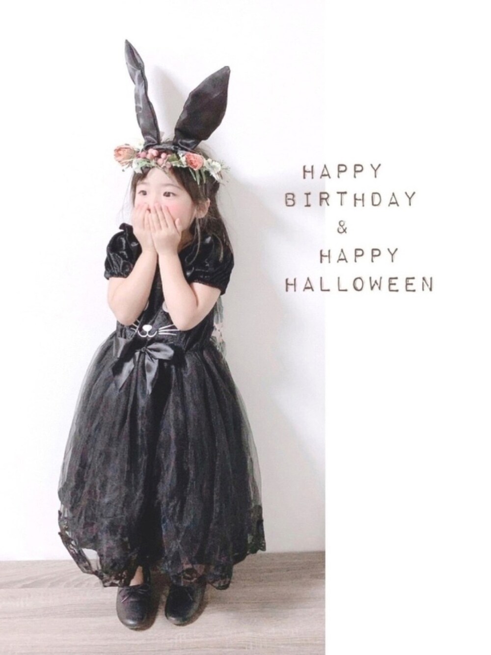 5さいになりました! 去年ネコになったワンピで今年はウサギ。