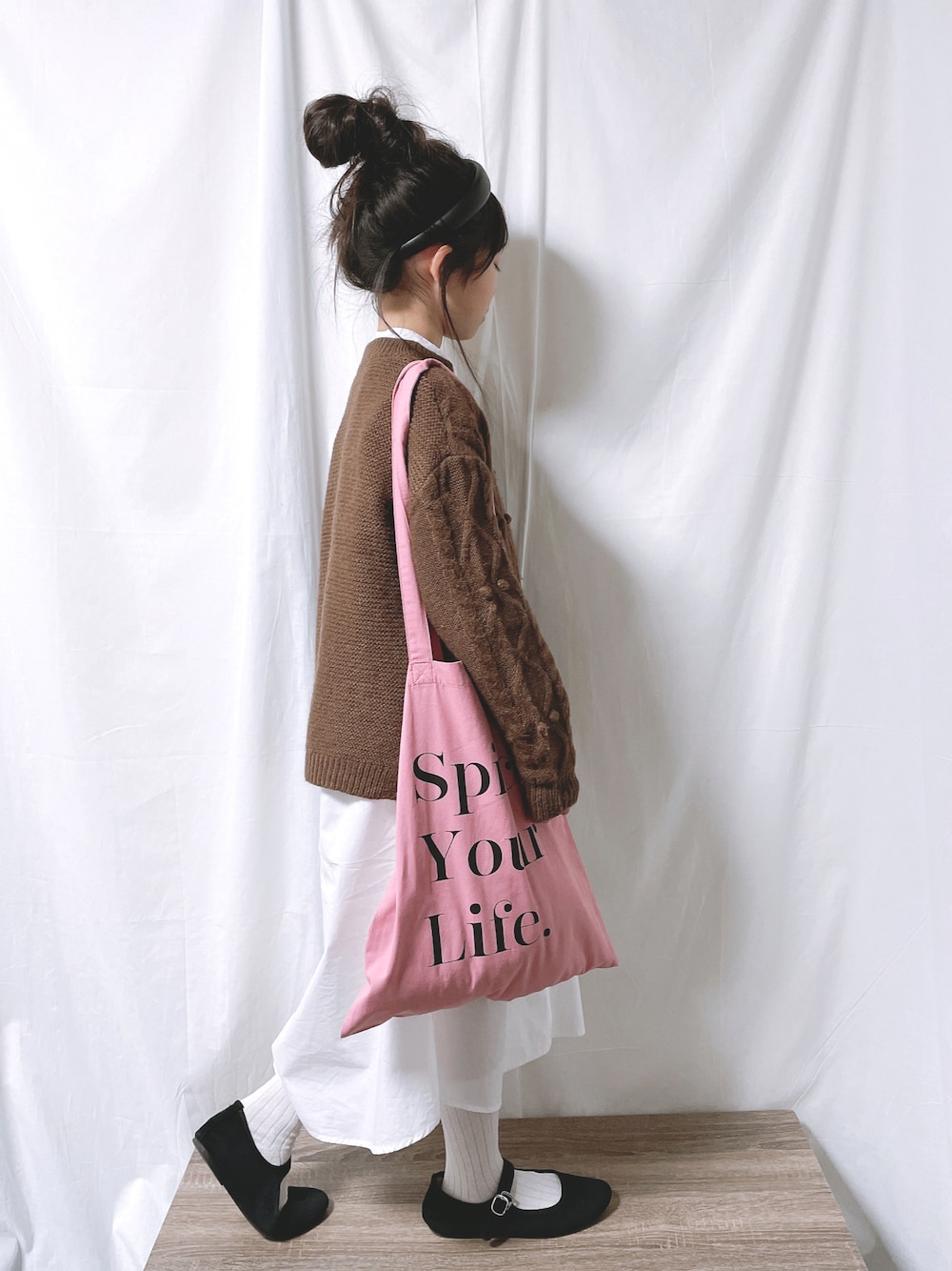ピンクのトートバッグ♡ 茶色のニットは3年目(⑉︎• •⑉︎)