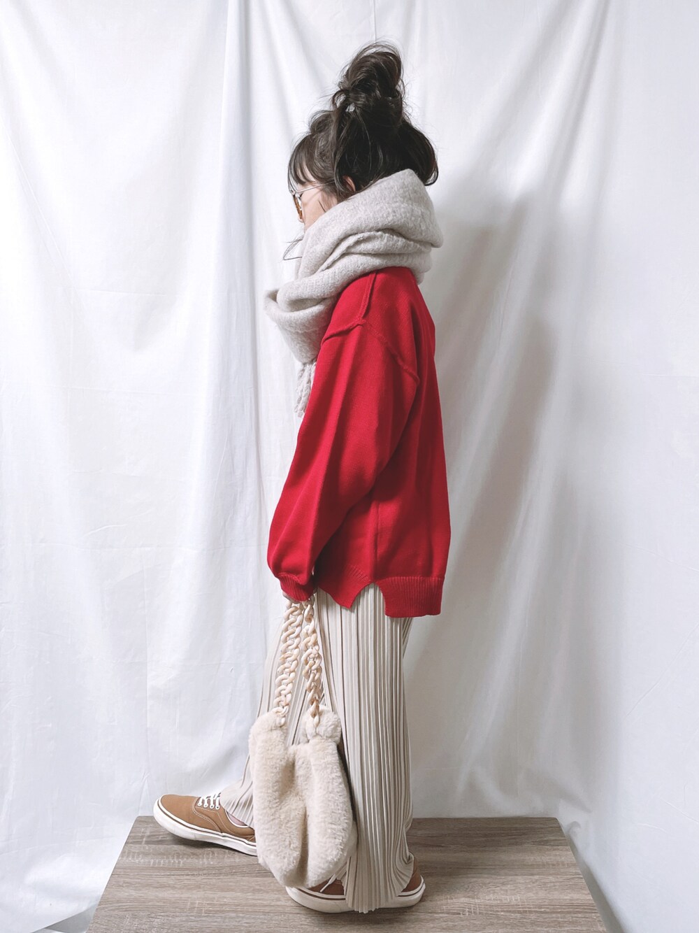 赤いニット🧶 サイズ150をクーポン出たら買おうと思って待ってたらいつのまにか完売してて、140にしたけど 大きめのつくりなのかちょうどよかった\( ¨̮ )/♡