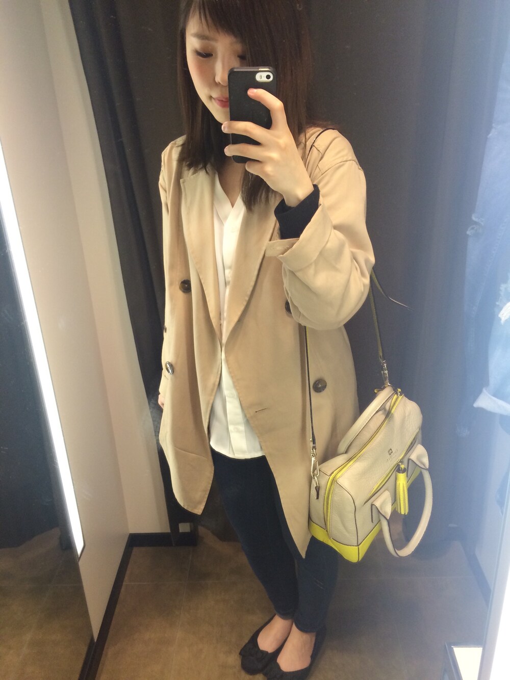 ひらめのハンドバッグを使ったコーディネート
