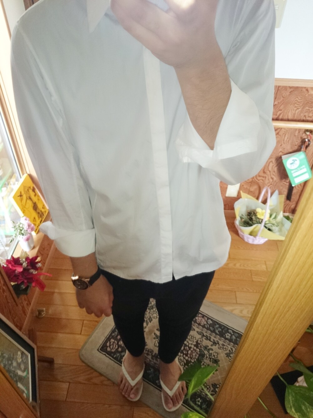このコーデによくボーダー合わせてLADの靴はいてまふ。 今日は長岡は雨だったけどサンダルはきたくて。 ビーサンです 上下LADMUSICIAN サンダル BEAMS 時計はUA