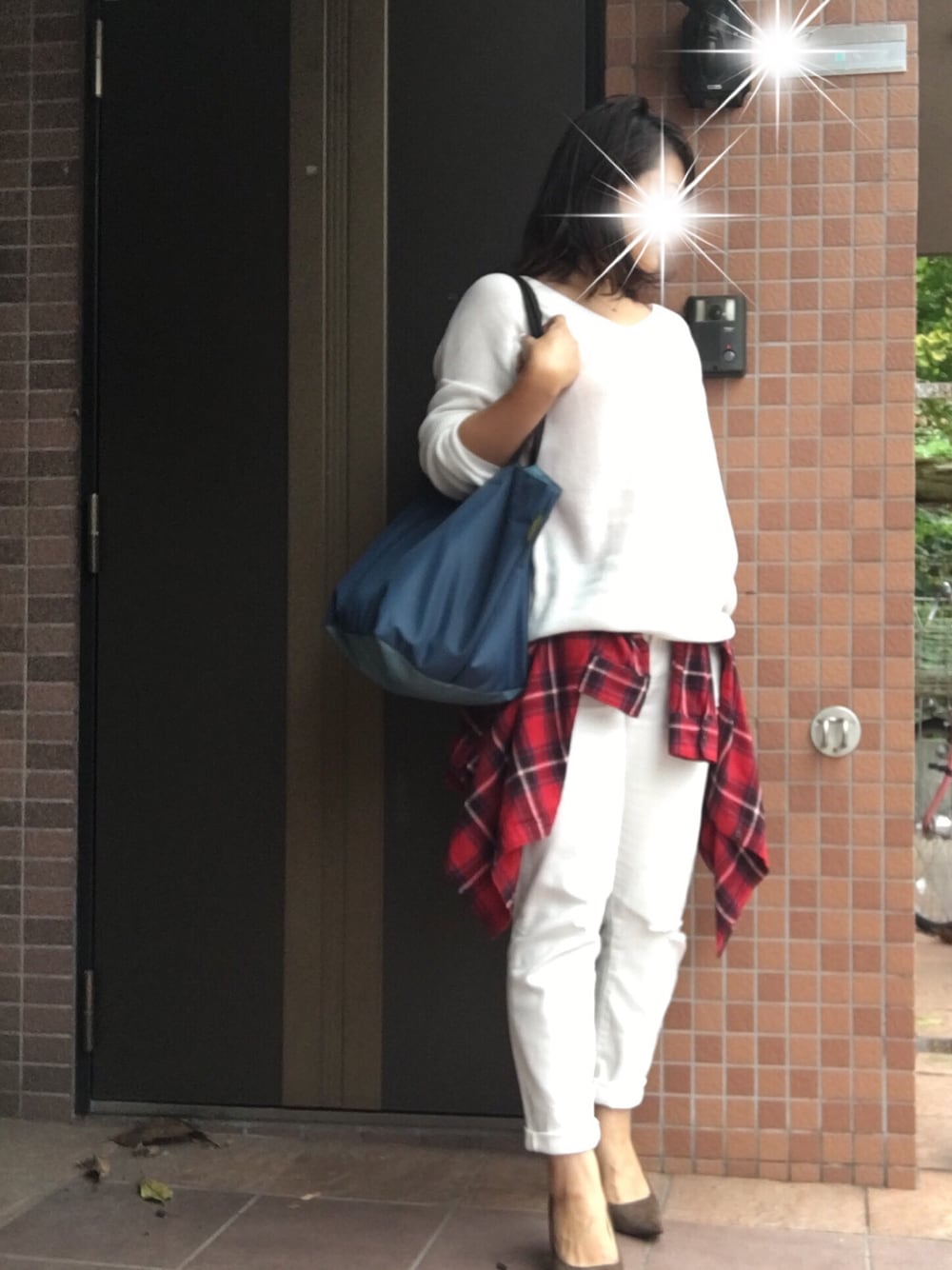 やってみたかったオールホワイトコーデ。 赤いネルシャツをポイントにしました。 オールホワイトじゃないですね…(笑) 幼稚園のマルシェに行ってきました。 手作り上手なママさん、尊敬します。