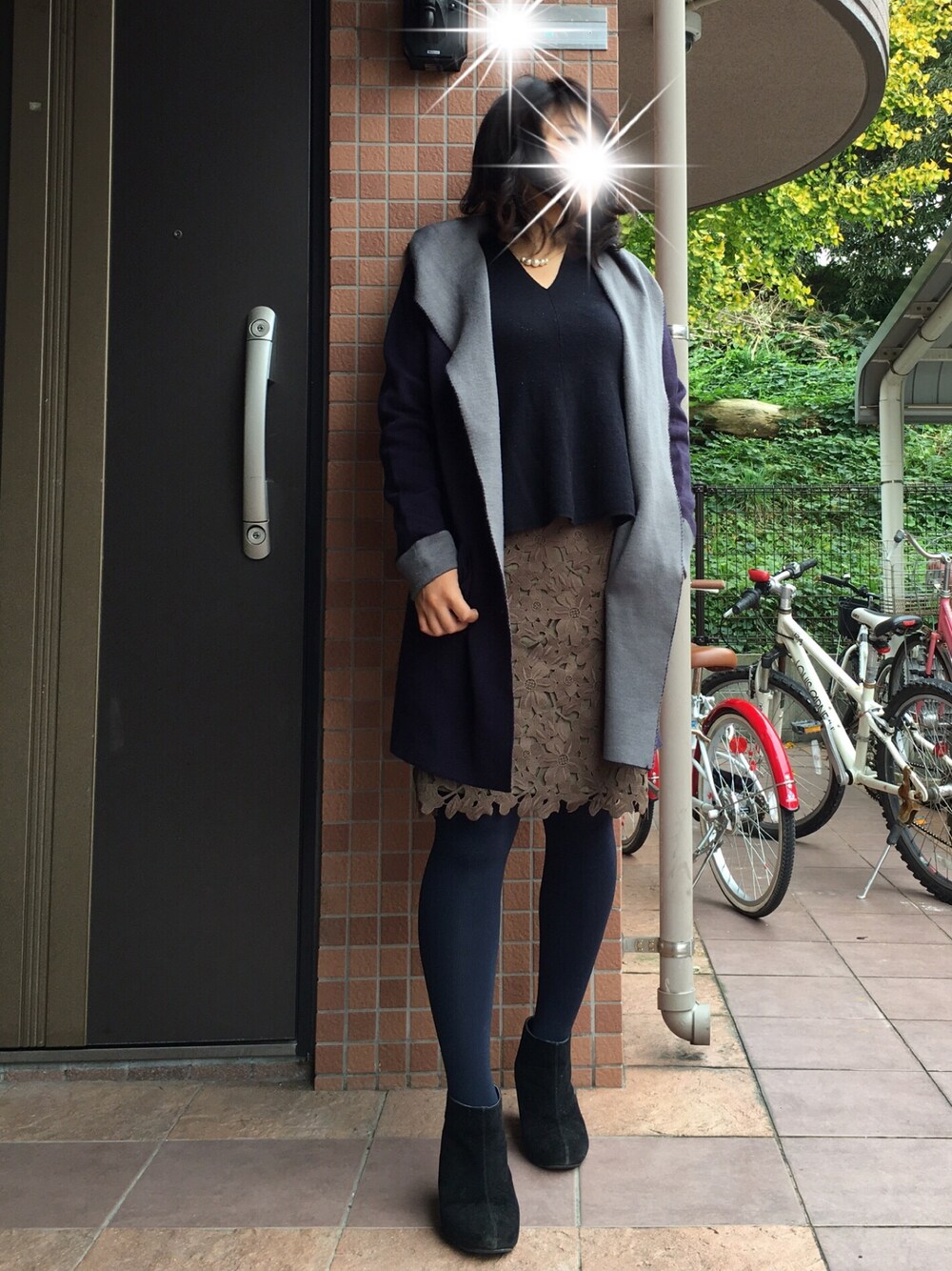 日曜日のコーデです。 お友達とランチコーデ。 なんとなく、キレイめに。 娘をエルゴで連れて行くので、ヒールは低めのブーティです。 美味しいランチとおしゃべりで癒されました