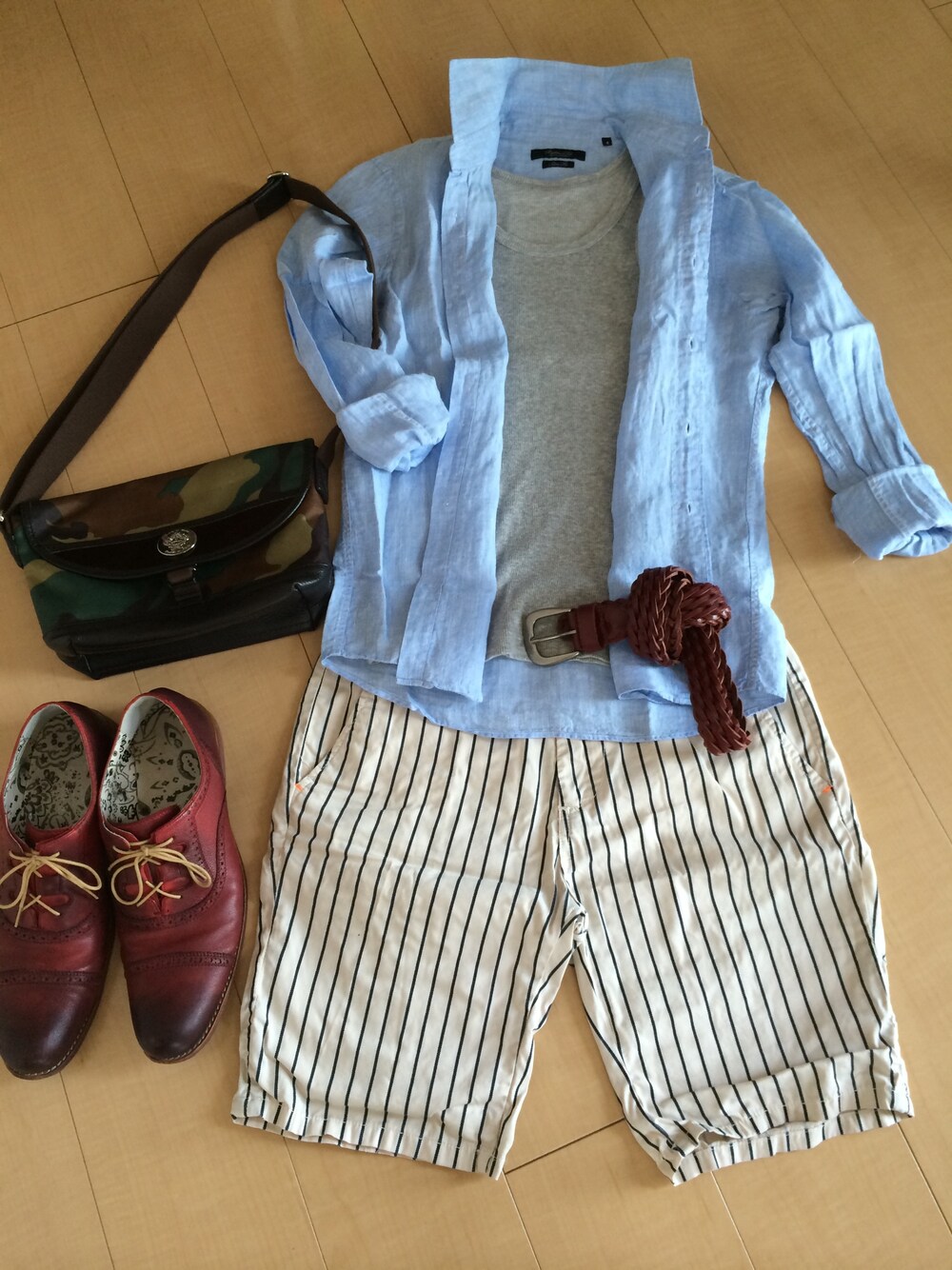 今日は暑いので全体的に涼しげなカラーで抑えて赤でアクセントを✨
