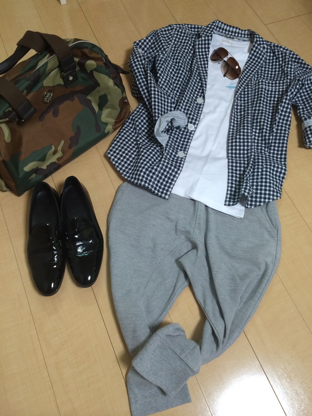 ラフ過ぎない大人感出てるかな? ギンガムチェックのシャツジャケは薄手なので腰巻にしてもok! 全体をモノトーンにまとめてお気に入りのバッグでアクセントをつけてみました✨