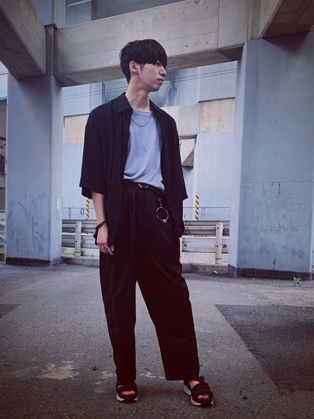 夏ですがブラックコーデ。 重たくなりすぎないようにインナーは 明るいグレーに、靴はサンダルに。 シンプルなコーデの時はアクセサリーは 多めにつけるタイプです。 やっぱりブラックが好き