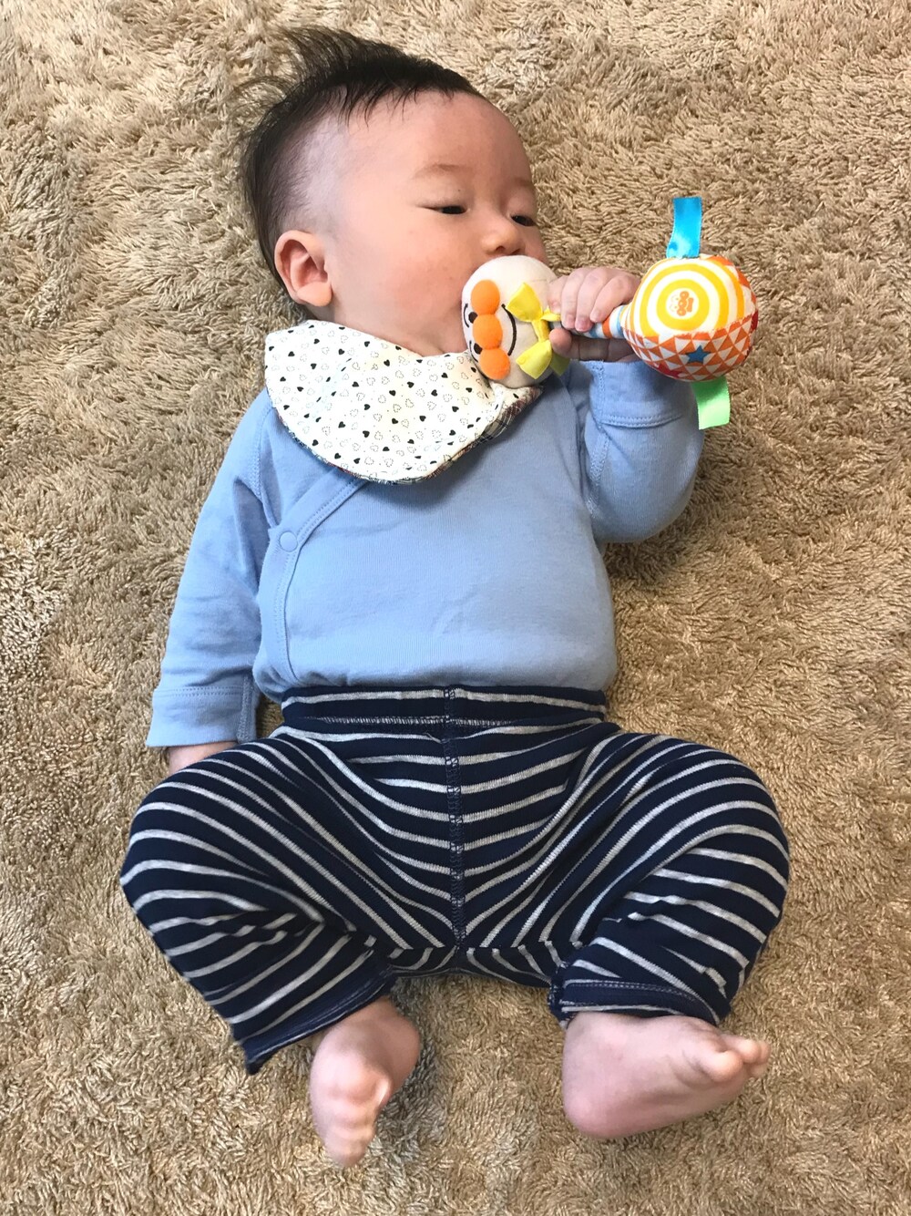 アンパンマンをパクっ😄♫ 持てるようになった👍 昨日と同じようなコーデになってしまった💦