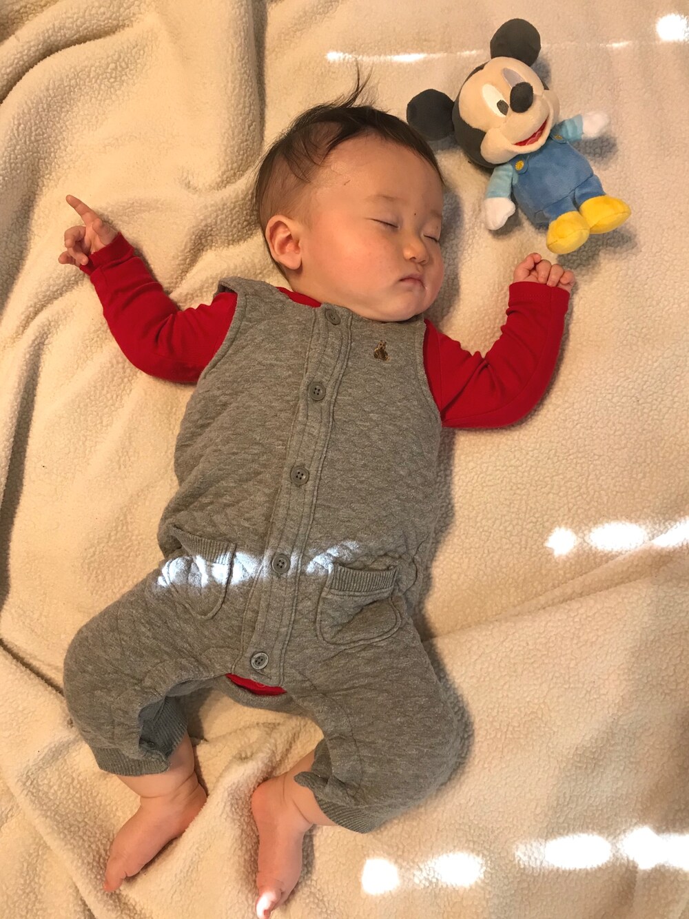 パパの実家にお泊まり中❤️ 気づいたらめずらしーくセルフねんねしてた😪💤 寝顔のかわいさは疲れを癒してくれるなぁ😍💕