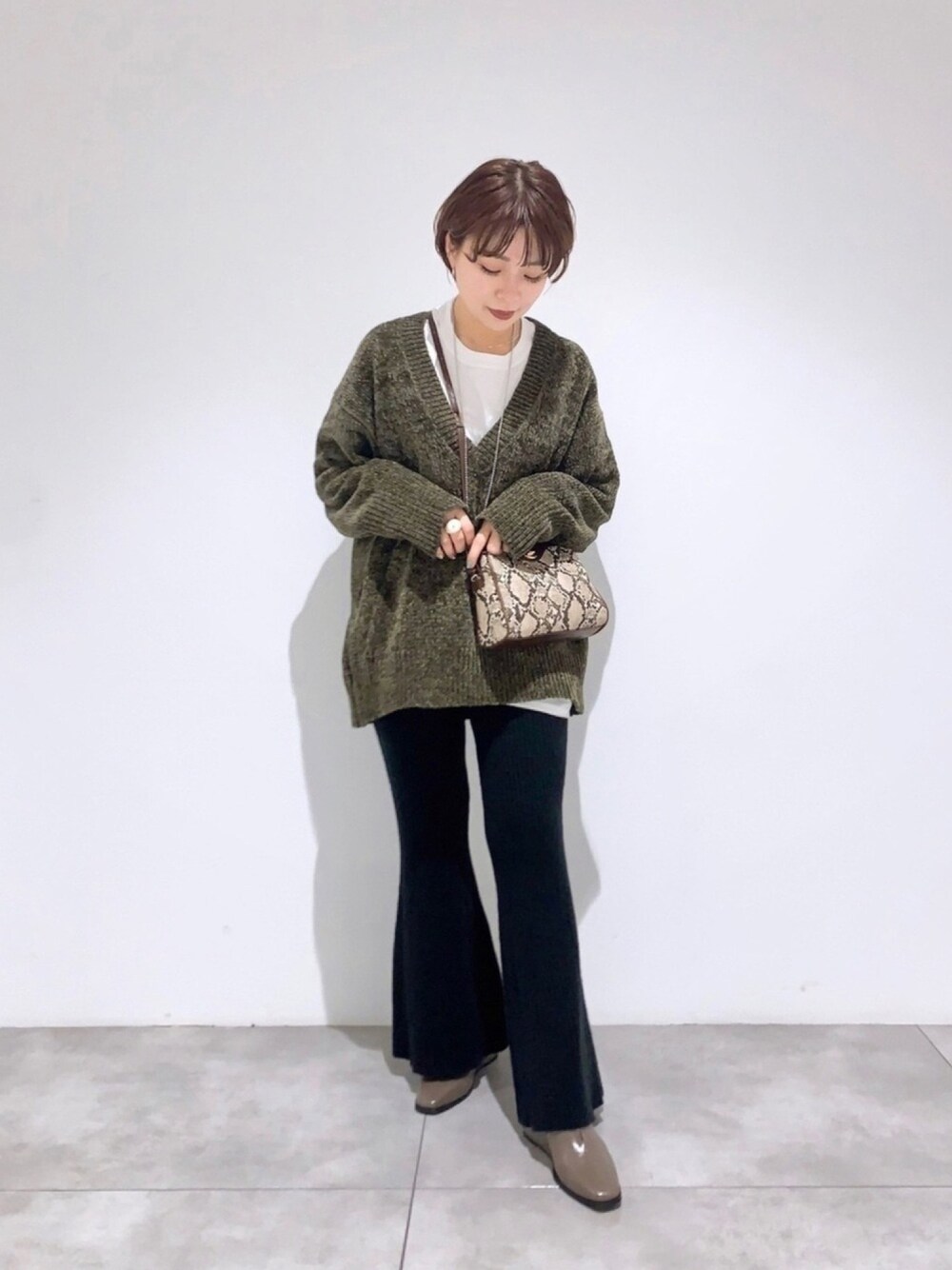 beee(SENSE OF PLACE 錦糸町パルコ)のニット/セーター「Vネックベロアモールセーター」を使ったコーディネート