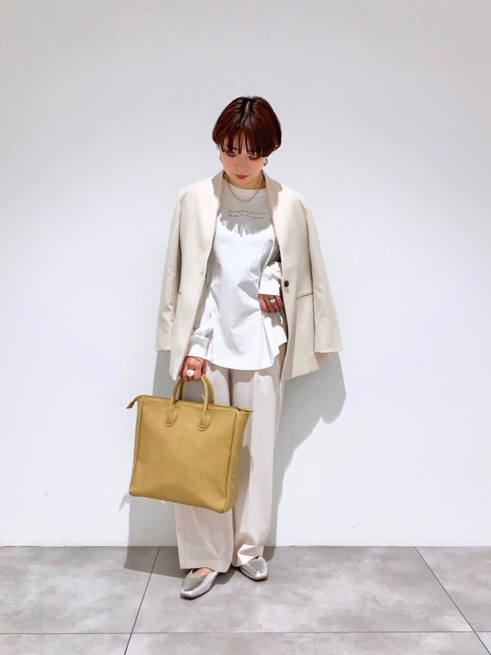 beee(SENSE OF PLACE 錦糸町パルコ)のノーカラージャケット「【WEB/一部店舗限定】サキソニーノーカラージャケット」を使ったコーディネート
