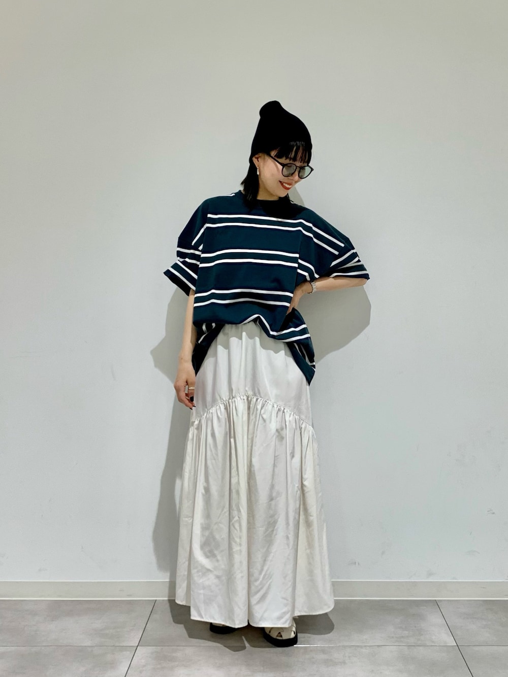 beee(SENSE OF PLACE 錦糸町パルコ)のスカート「メモリータフタティアードスカート」を使ったコーディネート