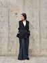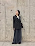 ジャケットがお買い求めやすくなりました👏 シンプルデザインなので一着あると万能に着回せます。 今回はデザインスカートと合わせてみました。 Mサイズ着用でこのずるっと感が好きです。 モードっぽく着こなしたい方は長めに履くのもおすすめです。