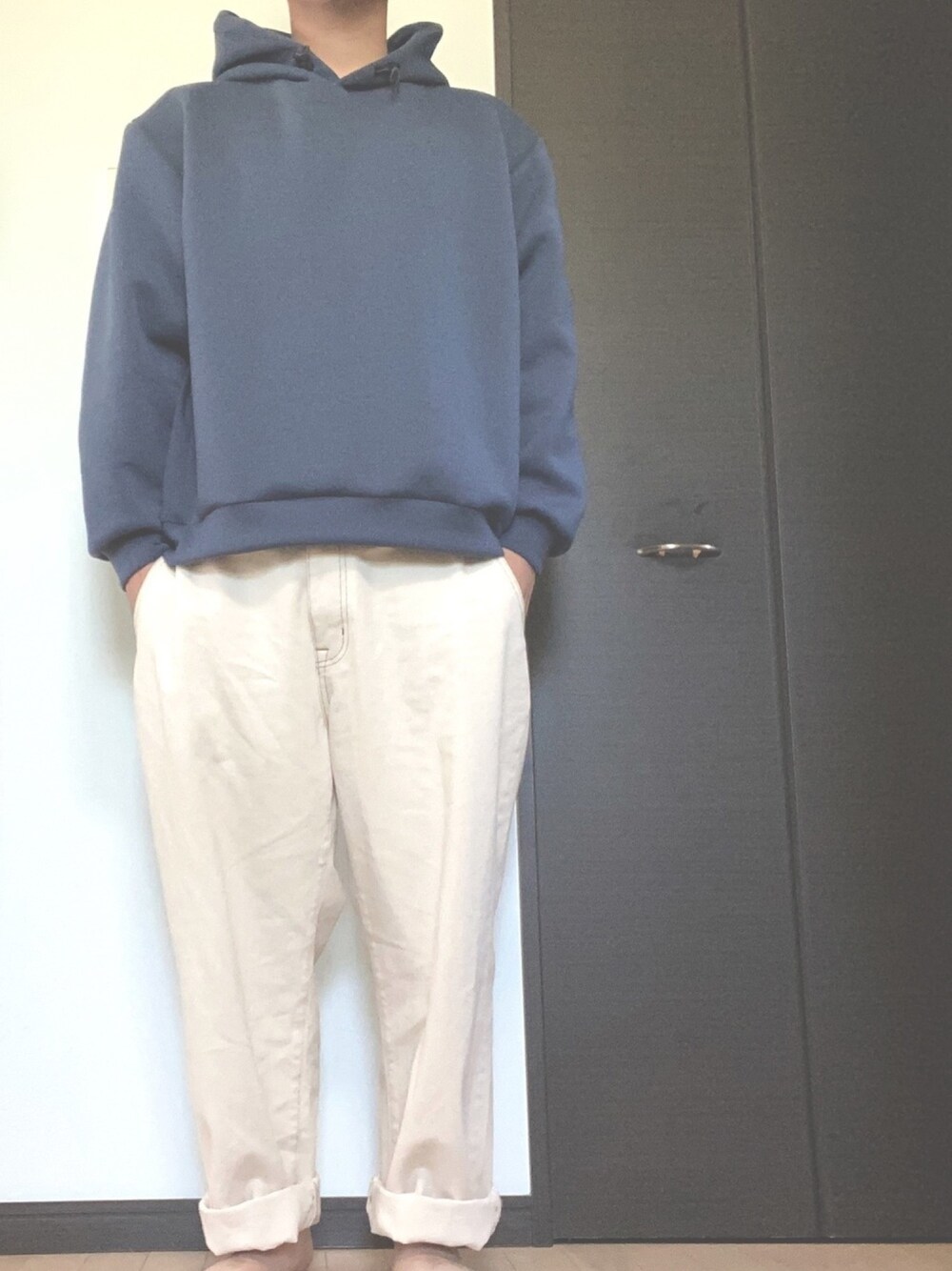 上はGUで売っていた水色っぽいビックパーカを、下はcoenの白のワイドパンツを合わせシンプルかつプチプラコーデ。 パーカーはフード部分がしっかりしてて、生地も薄く、着てて気持ちいいです! ワイドパンツも白すぎず、しっかりとした生地が良き😎