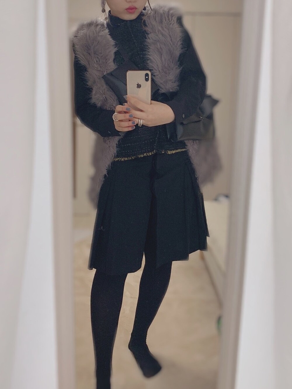 ハンドメイドのゴールド糸の 練り込まれた素材のトップスを シャツワンピースの上に着ました! instagram @p.techi ブランドアカウント