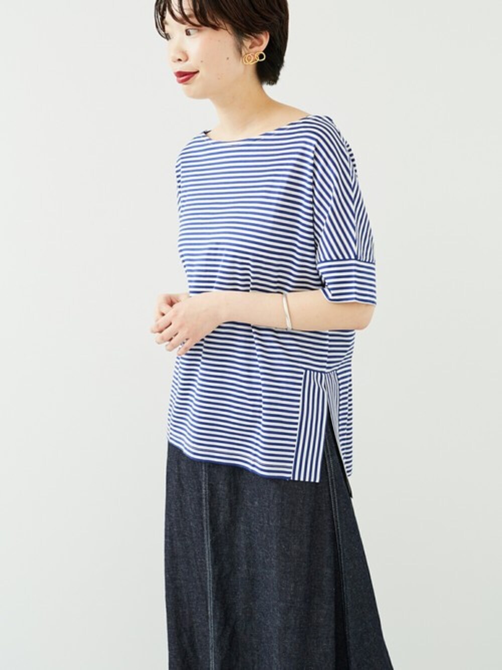 森 仁美のTシャツ/カットソー「ボーダー切替Tシャツ(半袖)」を使ったコーディネート