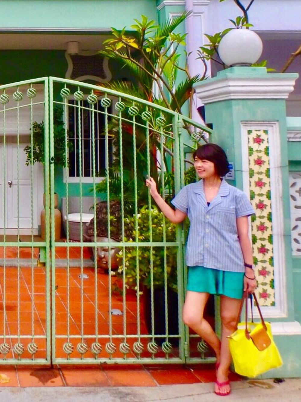 in SINGAPOREの時。 後ろがカラフルなので 私もカラフルに(笑)