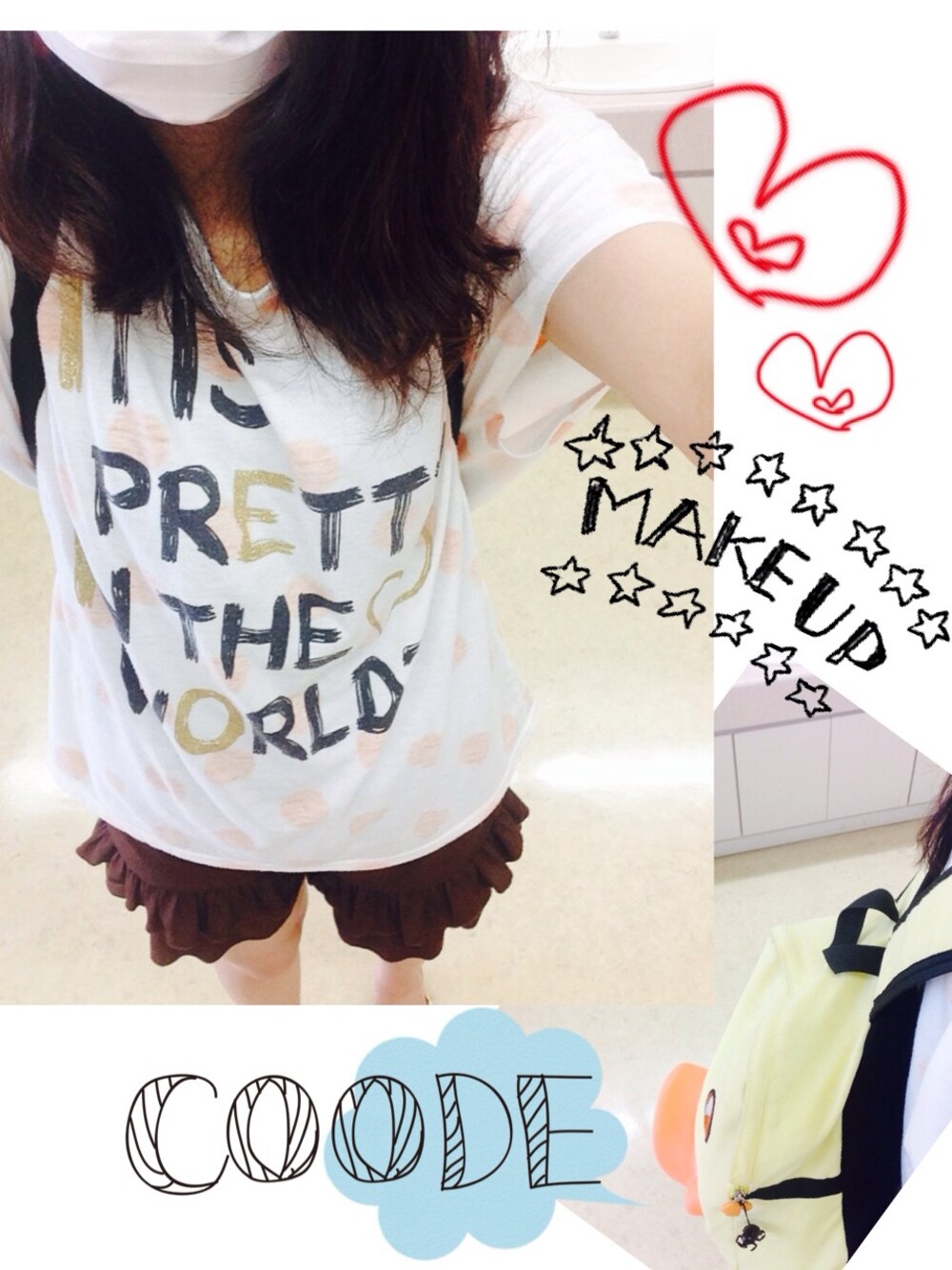 今日は白Tシャツということで 気合のなさ!!!!∑(・ω・*) 学校も2限だけだったから ゆるーい格好で楽しちゃったヾ(♥óωò)ノ これからバイトやけど さすがに着替えようかな笑 もちろんあひるさんも一緒だよ(◍•ᴗ•◍)