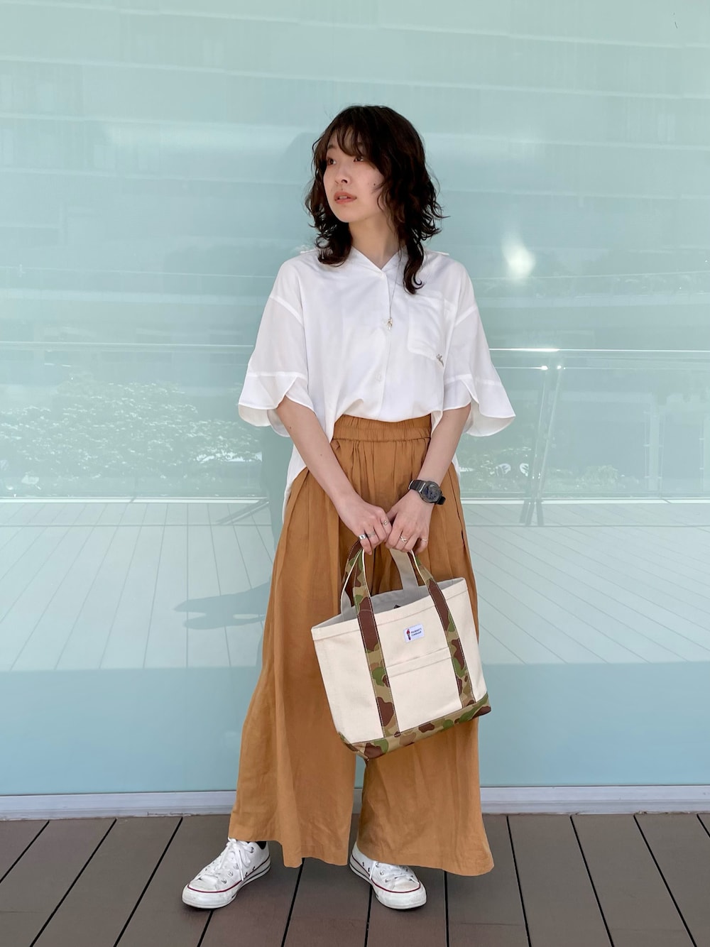nanami のシャツ/ブラウス「HALF SLEEVE LACEUP SHIRT/ ハーフスリーブ レースアップシャツ」を使ったコーディネート
