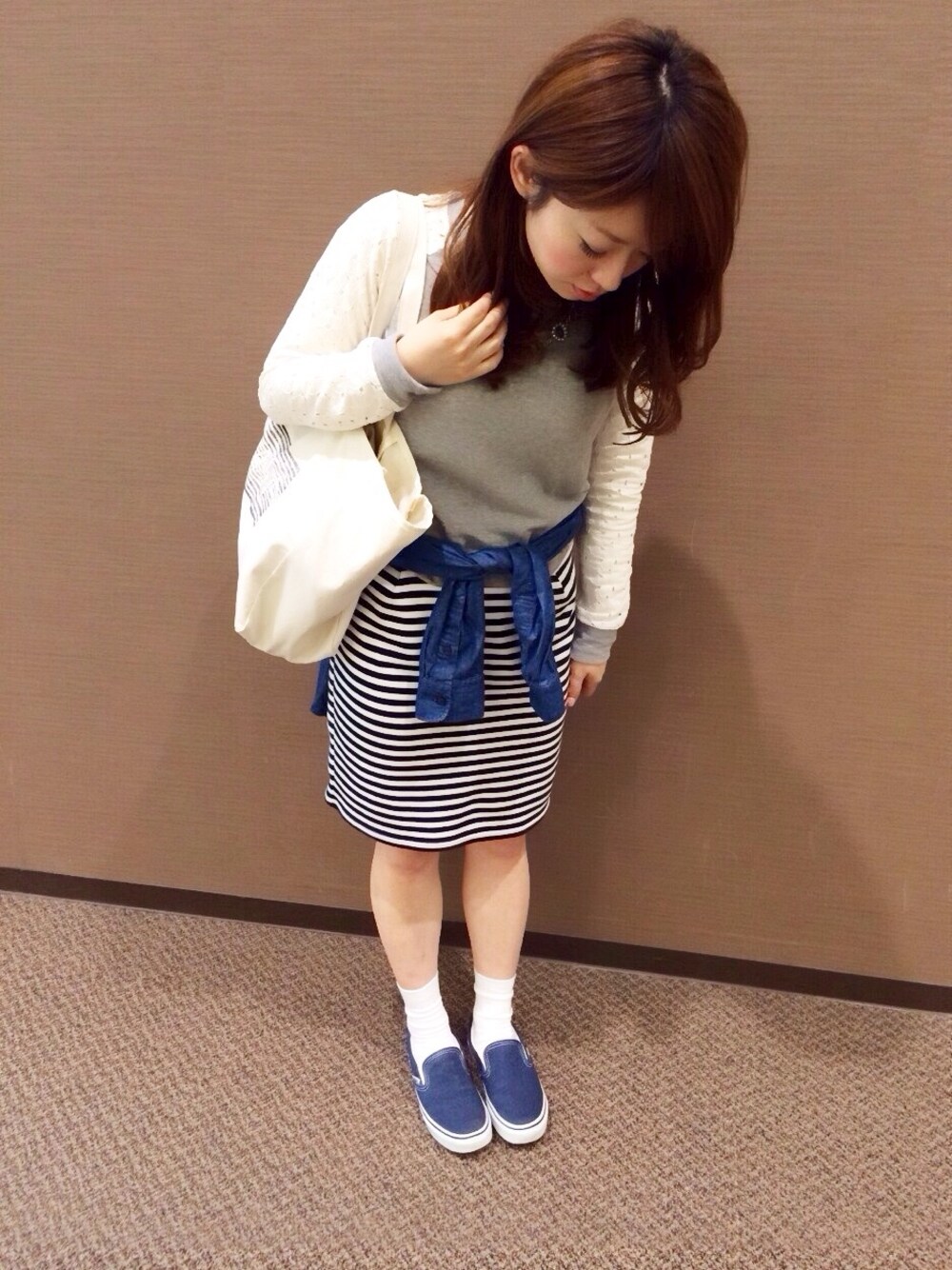 スウェット*BannerBarrett スカート*mikoa Lowrysfarm トートバッグ*BannerBarrett 白ソックス*靴下屋 スリッポン*VANS