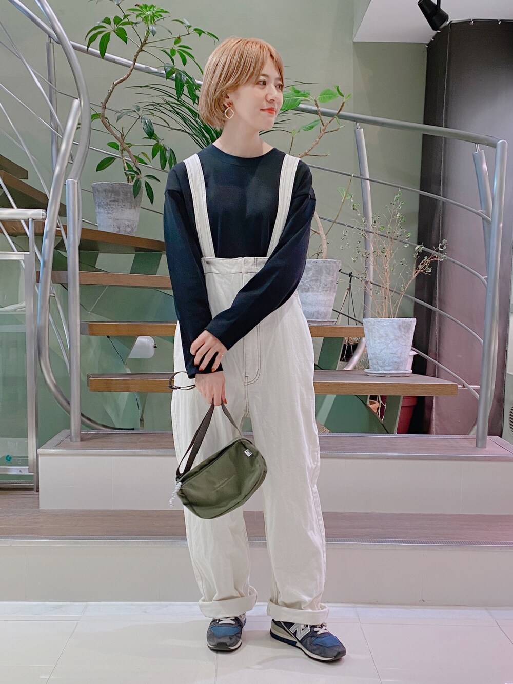 こちらのロングスリーブカットソーは生地が少し厚手なので、一枚でも着られますし重ね着のインナーとしても◎です! 滑らかな肌触りで着心地がとても優しく、パリッとした生地感がとても好みです! ステッチがポイントのサロペットと組み合わせてシンプルながらもオシャレなコーディネートにしてみました!