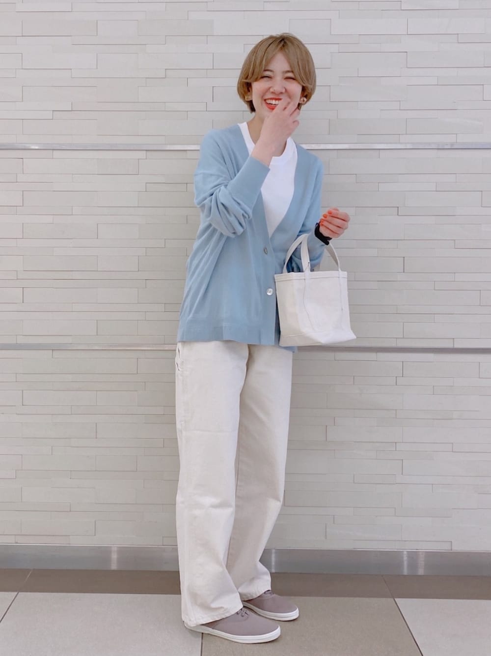 FORK&SPOONのカーディガンは薄手なので、今の時期から真夏の日除けや冷房対策にも使えそうです! 差し色にもなる爽やかなブルーがイチオシです◎ 鮮やかすぎず、ナチュラルなコーディネートにも馴染んでくれますよー! ホワイトデニムと合わせた爽やかコーディネートにしてみました*