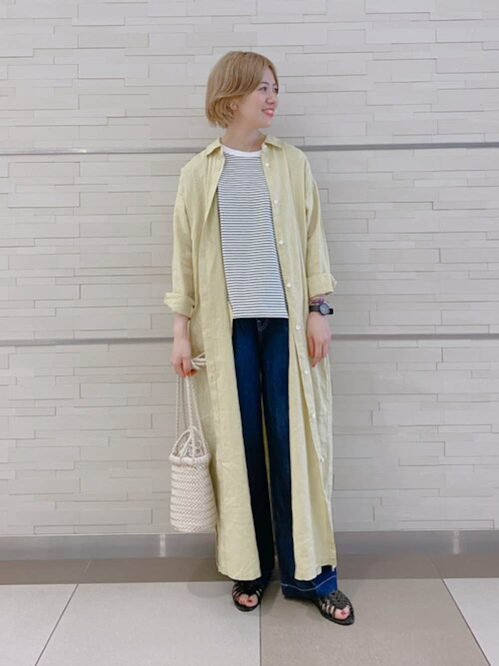 FORK&SPOONの綿麻デニムワイドパンツ!柔らかくて穿きやすいのに、形もキレイで程よい太さ…これを穿いたら、普通のデニムに戻れなくなってしまいそうです…!! ウエストはゴム仕様なのも嬉しいポイントです◎ イエローのシャツワンピースは、1枚加えるだけで一気にオシャレさ増し増しです!!