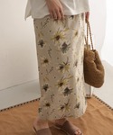 FORK&SPOONのバンドカラーシャツにフラワープリントのスカートを合わせたレイヤードスタイル☆ ネイビーのシャツにフラワープリントが映えてかわいい~◎